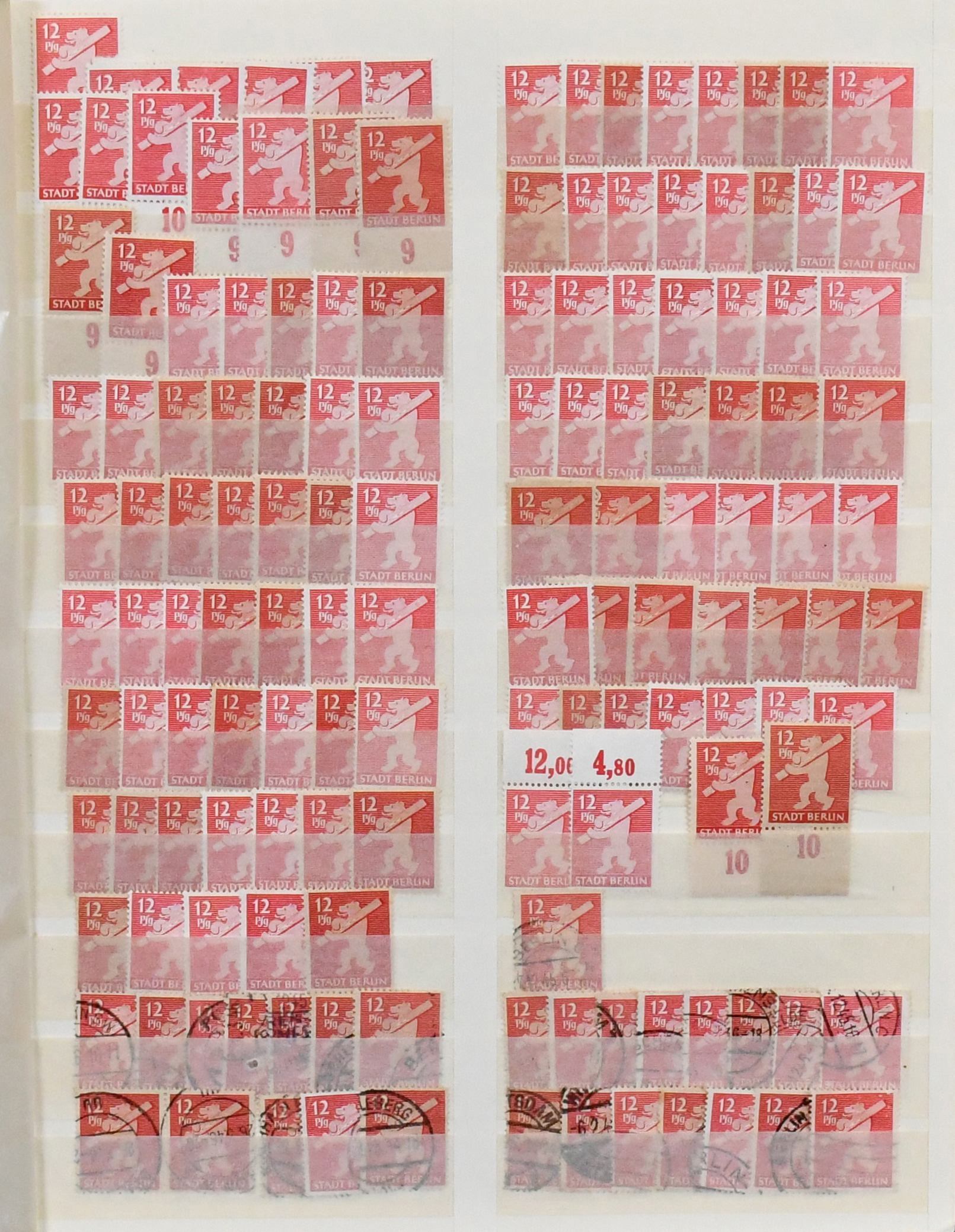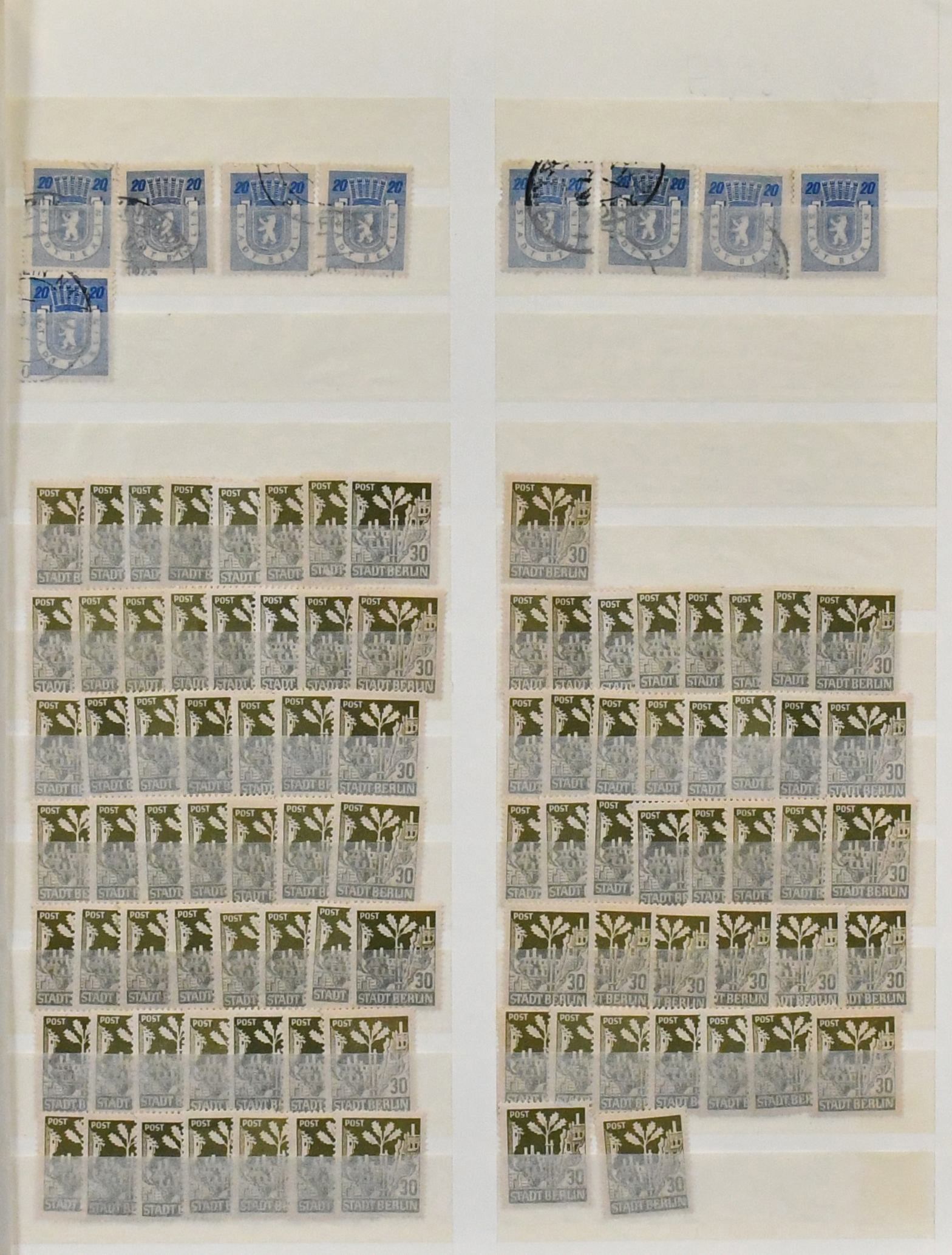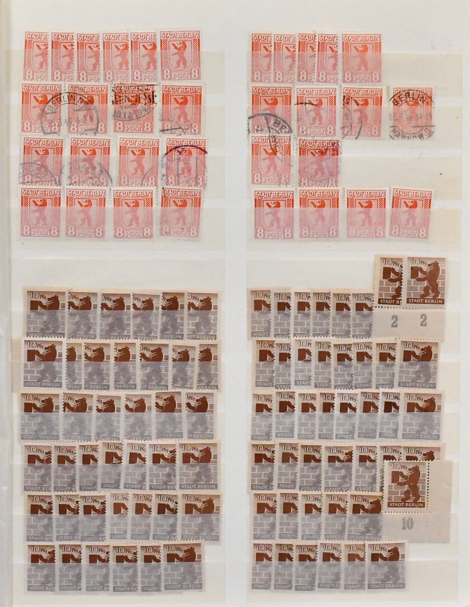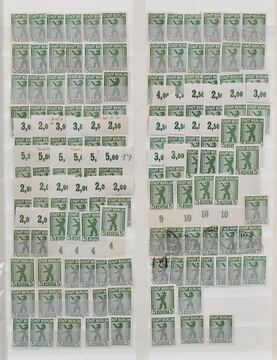 SBZ, Berlin und Brandenburg, Partie von rund 1500 Werten ex Nr. 1/7 in allen Erhaltungen, alle Wertstufen vielfach, auf Albenblättern. Fundgrube für Papiersorten, Farben usw.