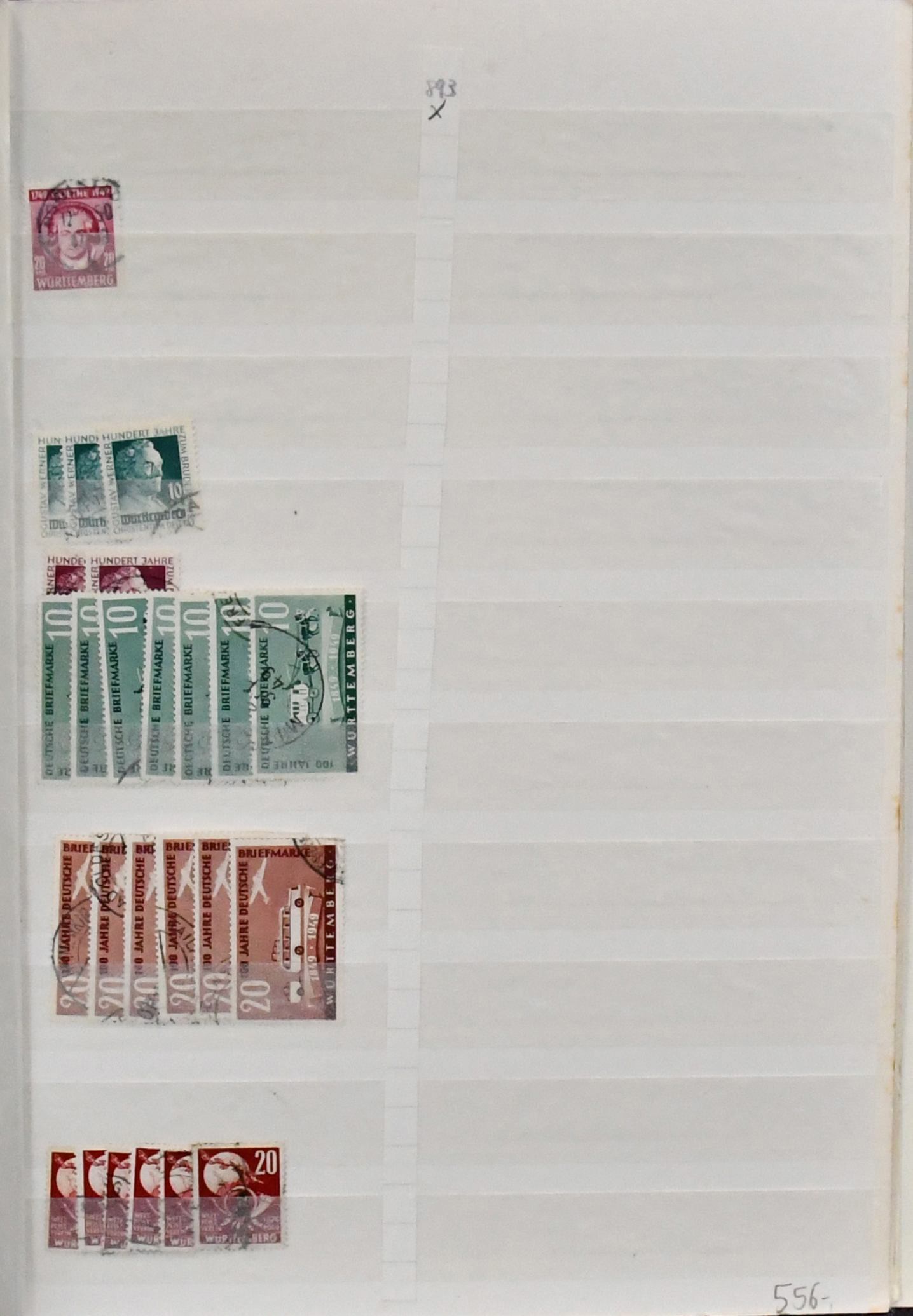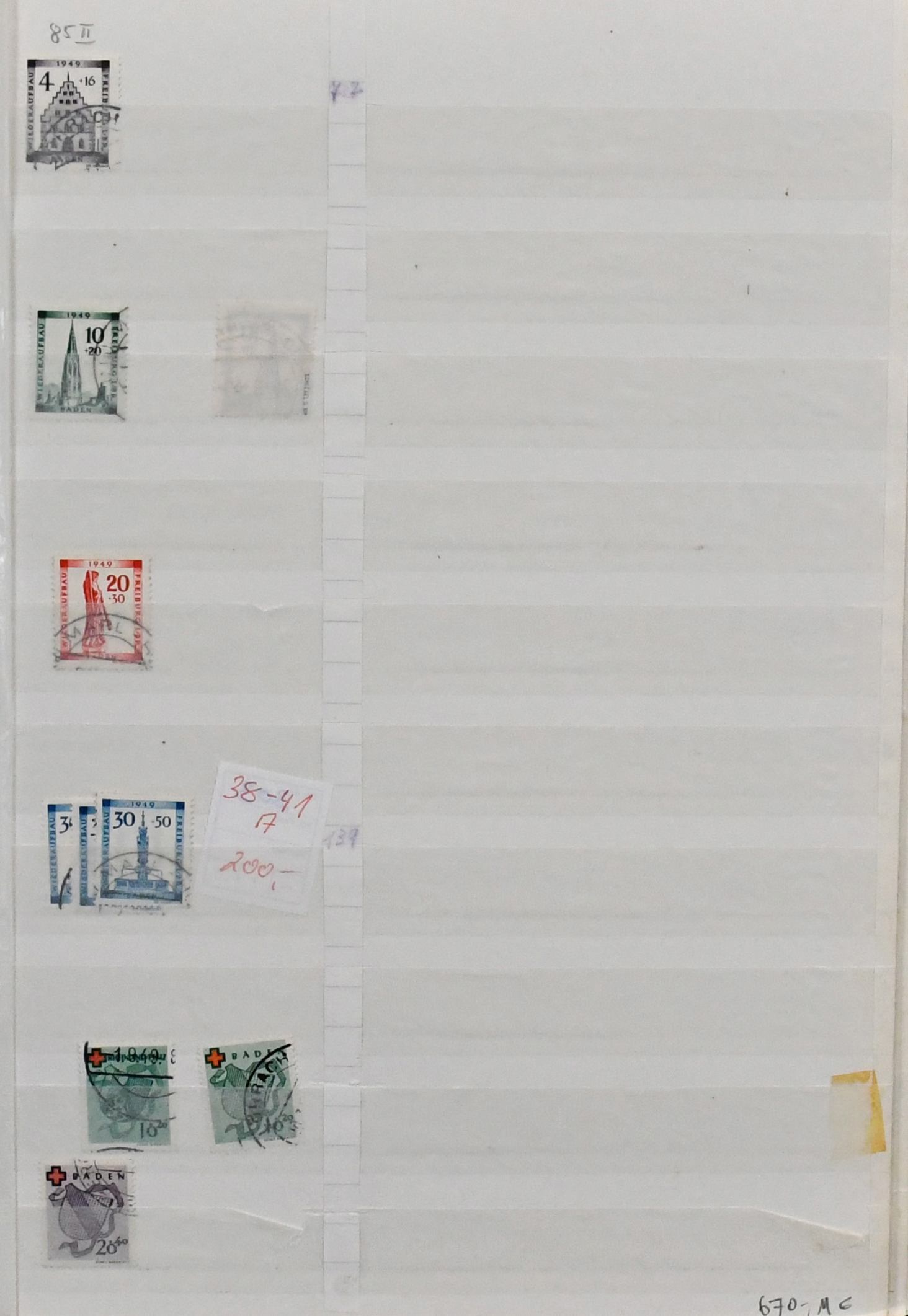 Französische Zone, 1945/49, gestempelter, sortenreicher Bestand von rund 2500 Werten, immer wieder mit besseren Ausgaben, im dicken E-Buch. Dabei zehn Rotkreuz-Werte, Baden Nr. 28/37 mehrf., 38/41A, 50/57, meist mehrf., Rheinl.-Pfalz Nr. 30/31 mehrf., 32/41, 49/52 mehrf., Württemberg mehrf. Nr. 36/37 usw. Mi., billigste Type gerechnet, bereits 10900,-
