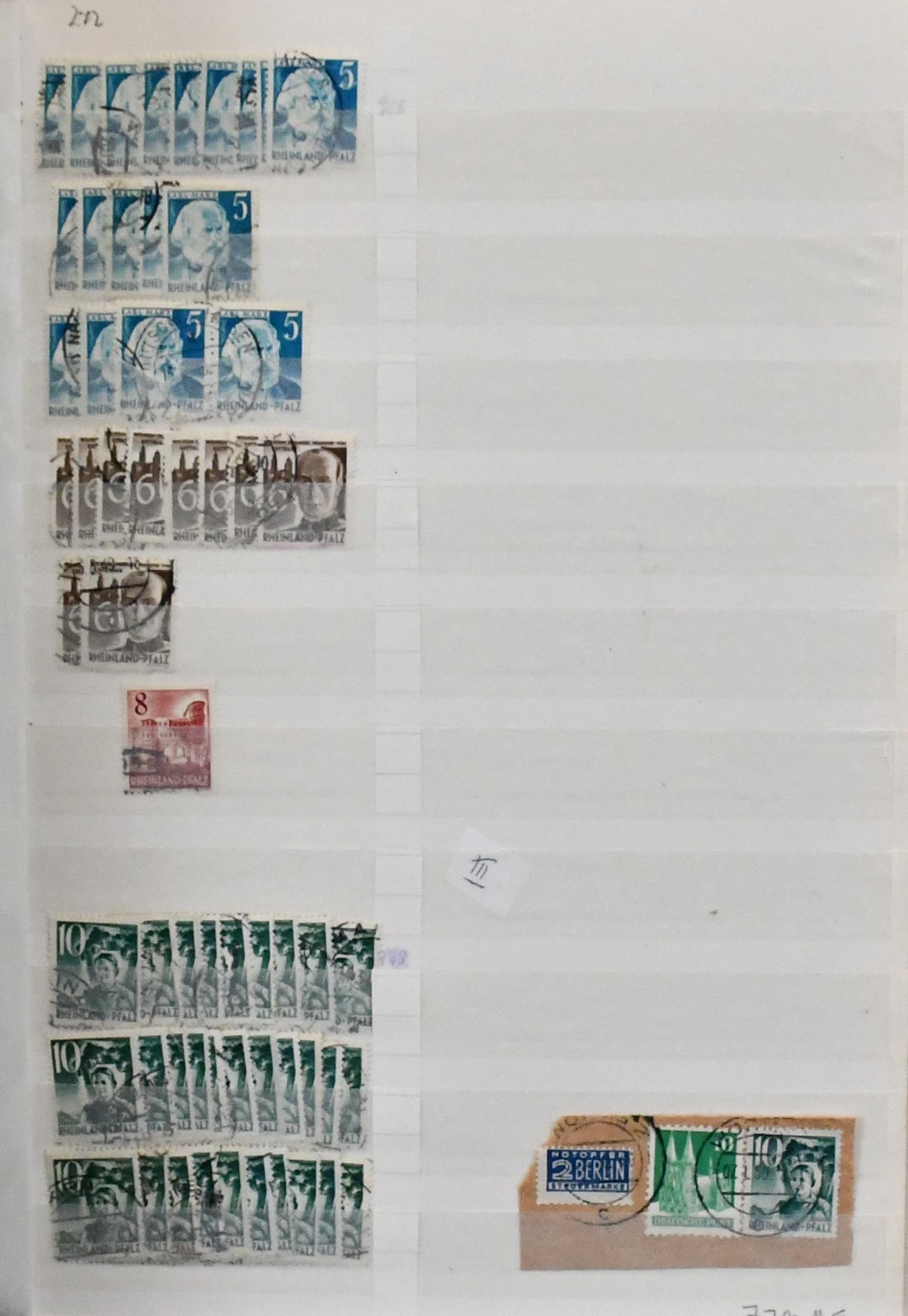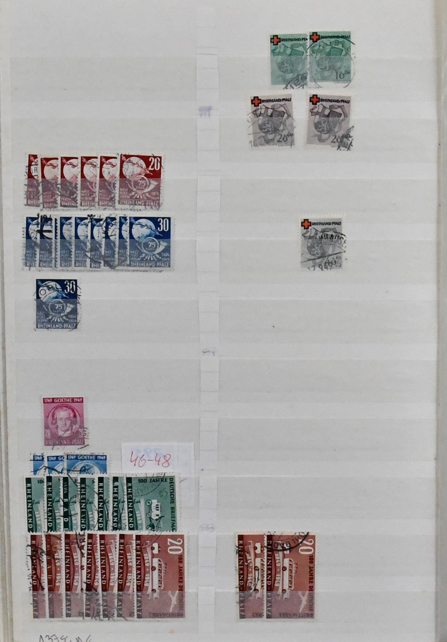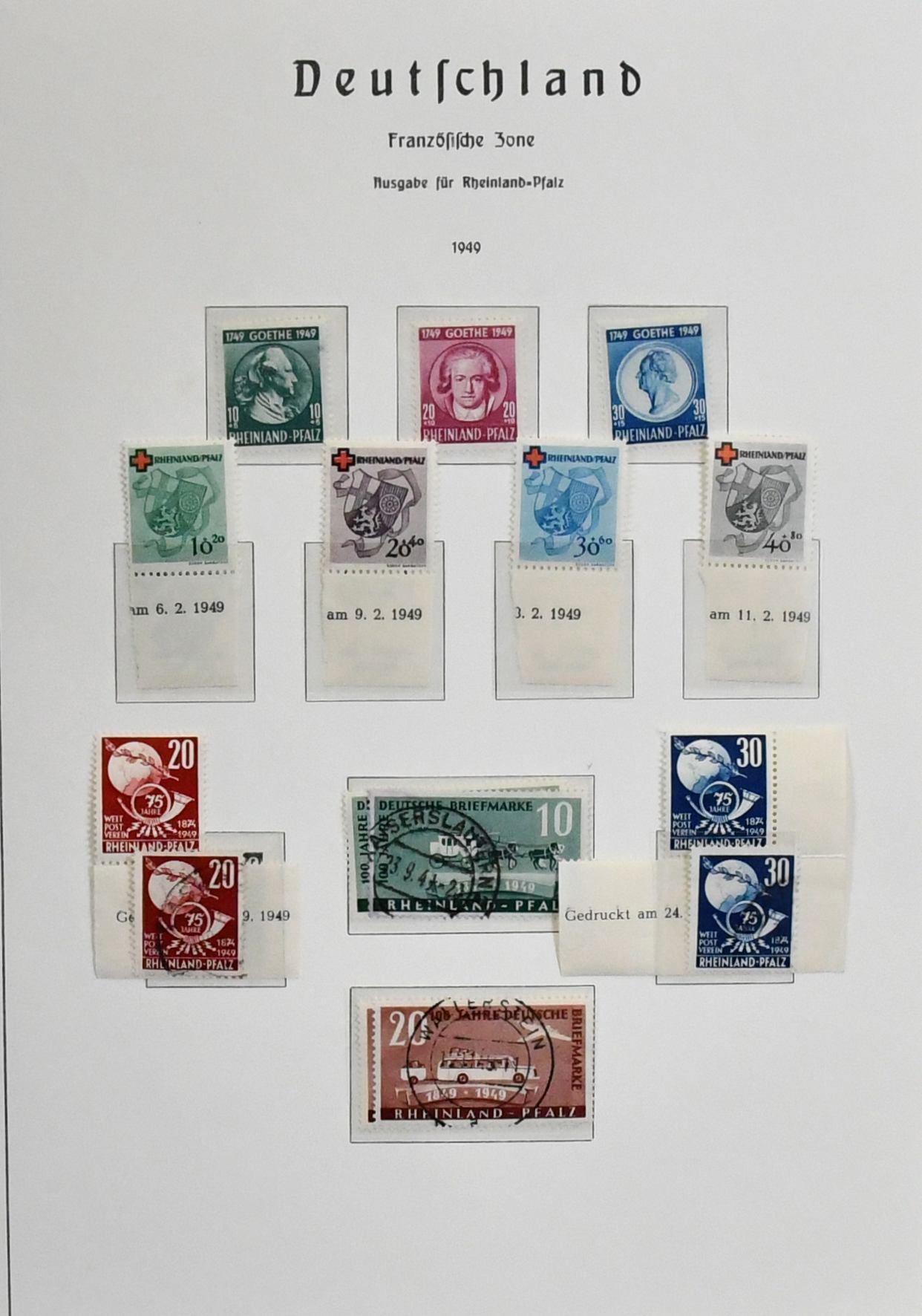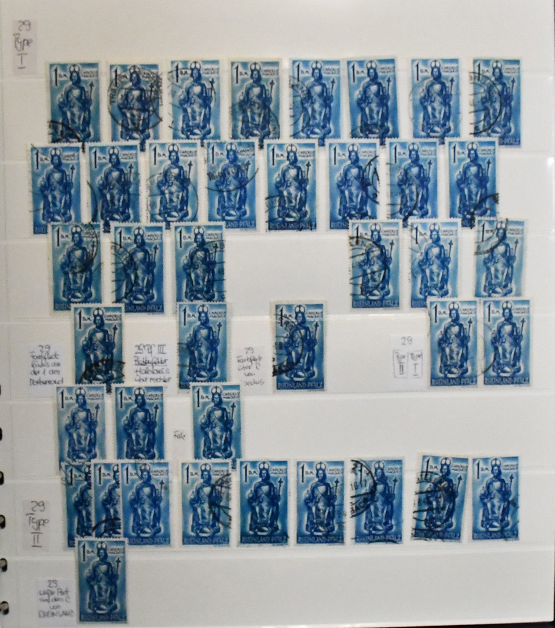 Rheinland-Pfalz, 1945/49, saubere Zusammenstellung von rund 3500 postfrischen u. gestempelten Werten in zwei SAFE-Ringbindern. Dabei die Freimarken-Ausgaben umfangreich nach Typen spezialisiert, inkl. Nr. 36 postfr. u. gest., sowie rund 100 Werte mit Plattenfehlern und Abarten, Rotkreuz-Satz und -Block postfr., Nr. 46/52 postfr. und gest. etc. Hoher KW!