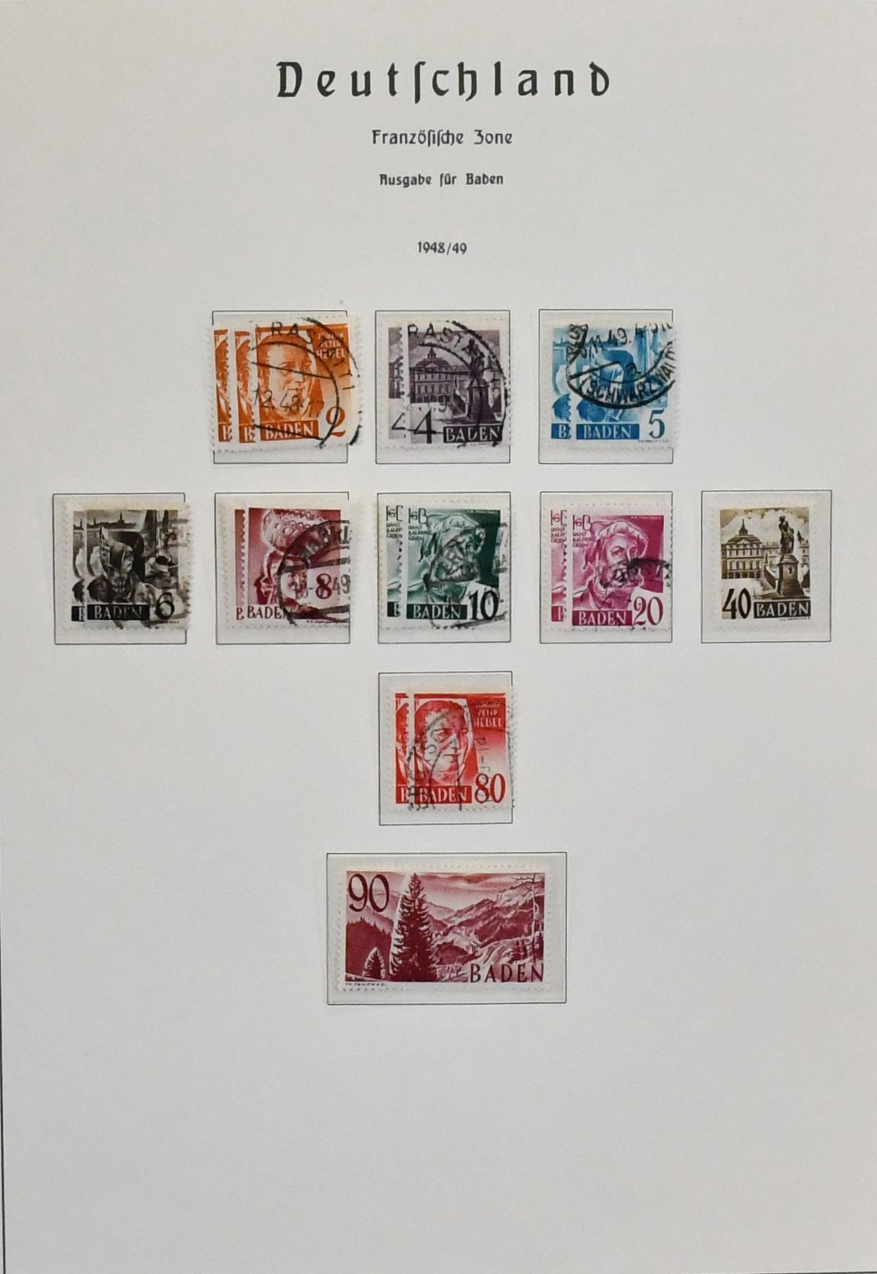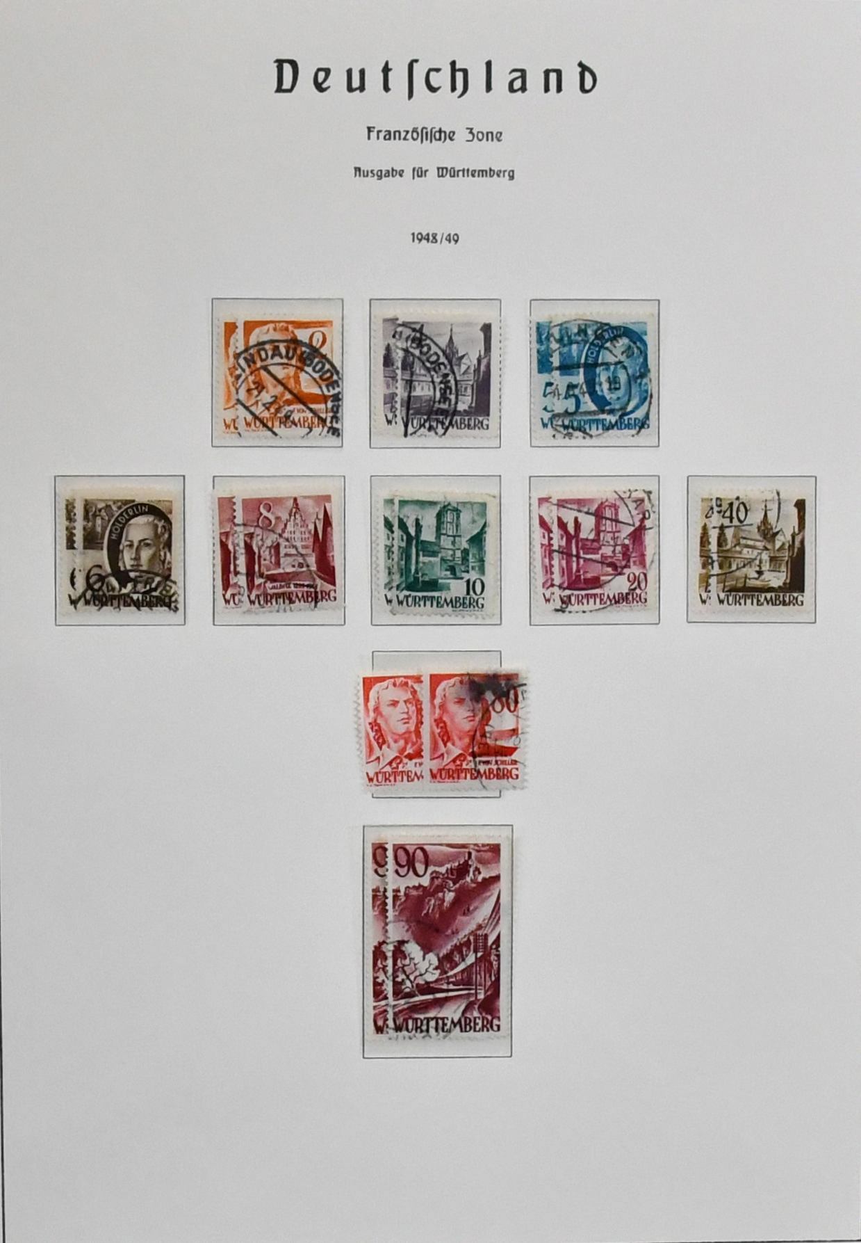Französische Zone, 1945/49, gestempelte Slg. mit vielen kpl. Sätzen, u.a. Baden Nr. 1/37, bessere geprüft, Bl. 1A mit PF I und Bl. 1B mit PF VI, je mit Gefälligkeitsstempel (Mi. 375,-), Nr. 38/41A, 50/57, Württemberg Nr. 1/37, Höchstwert gepr. Schlegel BPP, usw. Mi. 2000,-