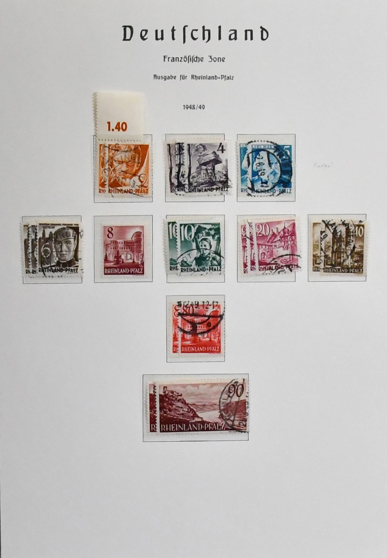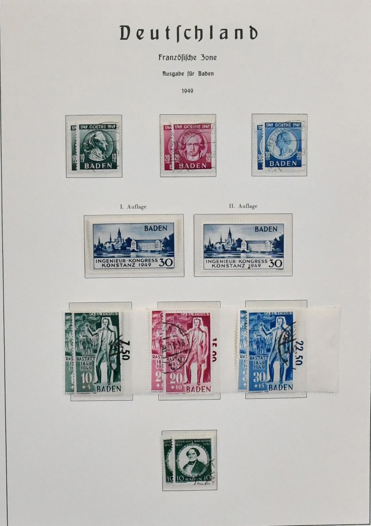 Französische Zone, 1945/49, gestempelte Slg. mit vielen kpl. Sätzen aller drei Gebiete. Dabei Baden Nr. 1/45, Goethe-Satz, Rheinl.-Pfalz ab Nr. 1/31, mit Rotkreuz- und Goethe-Satz, Württemberg ab Nr. 1/37 usw. Mi. 3200,-