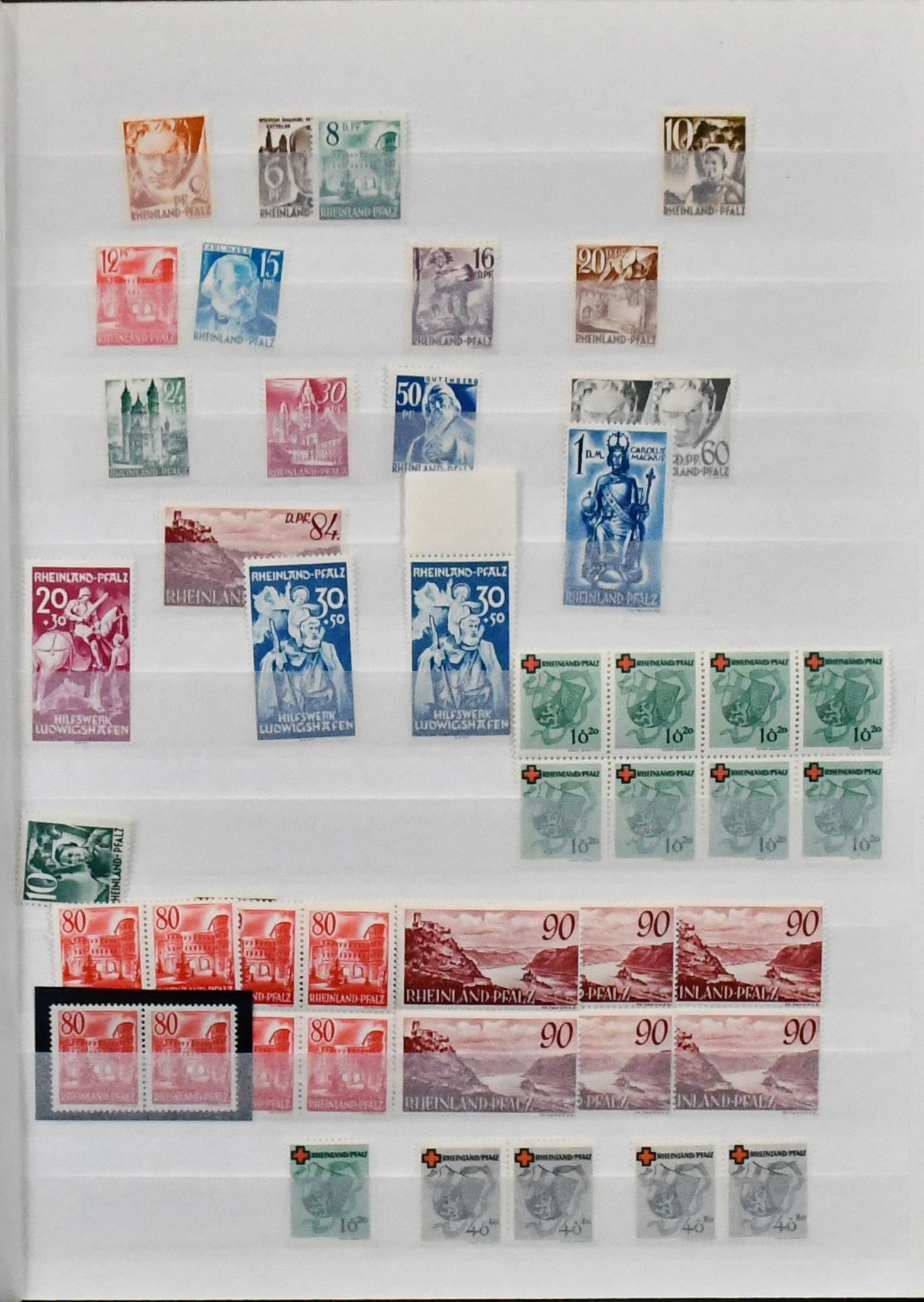 Französische Zone, 1945/49, bis auf Württemberg Bl. 1, komplette Sammlung inkl. allen III. Freimarken-Sätzen, die besseren Werte teils per zwei, mit allen Rotkreuz-Sätzen, Baden Bl. 1A und 2, Rheinland-Pfalz Bl. 1 usw.