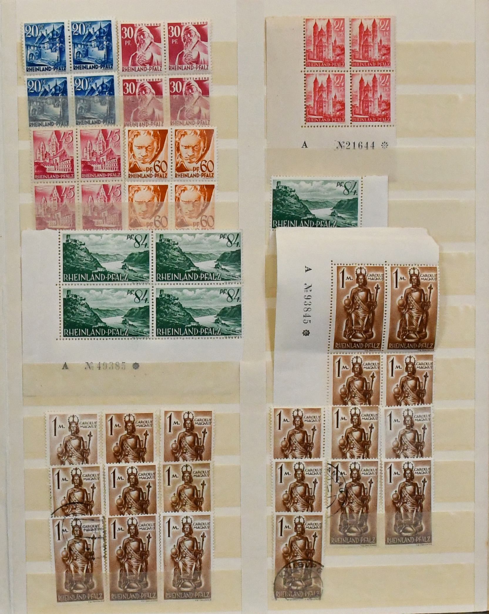 Französische Zone, gest. Partie mit Allg. Ausgabe Nr. 5, sowie geprüften Nr. 11/13 (Mi. 250,-), Rheinland-Pfalz Nr. 32/41 (550,-) usw.