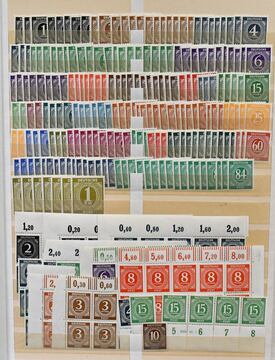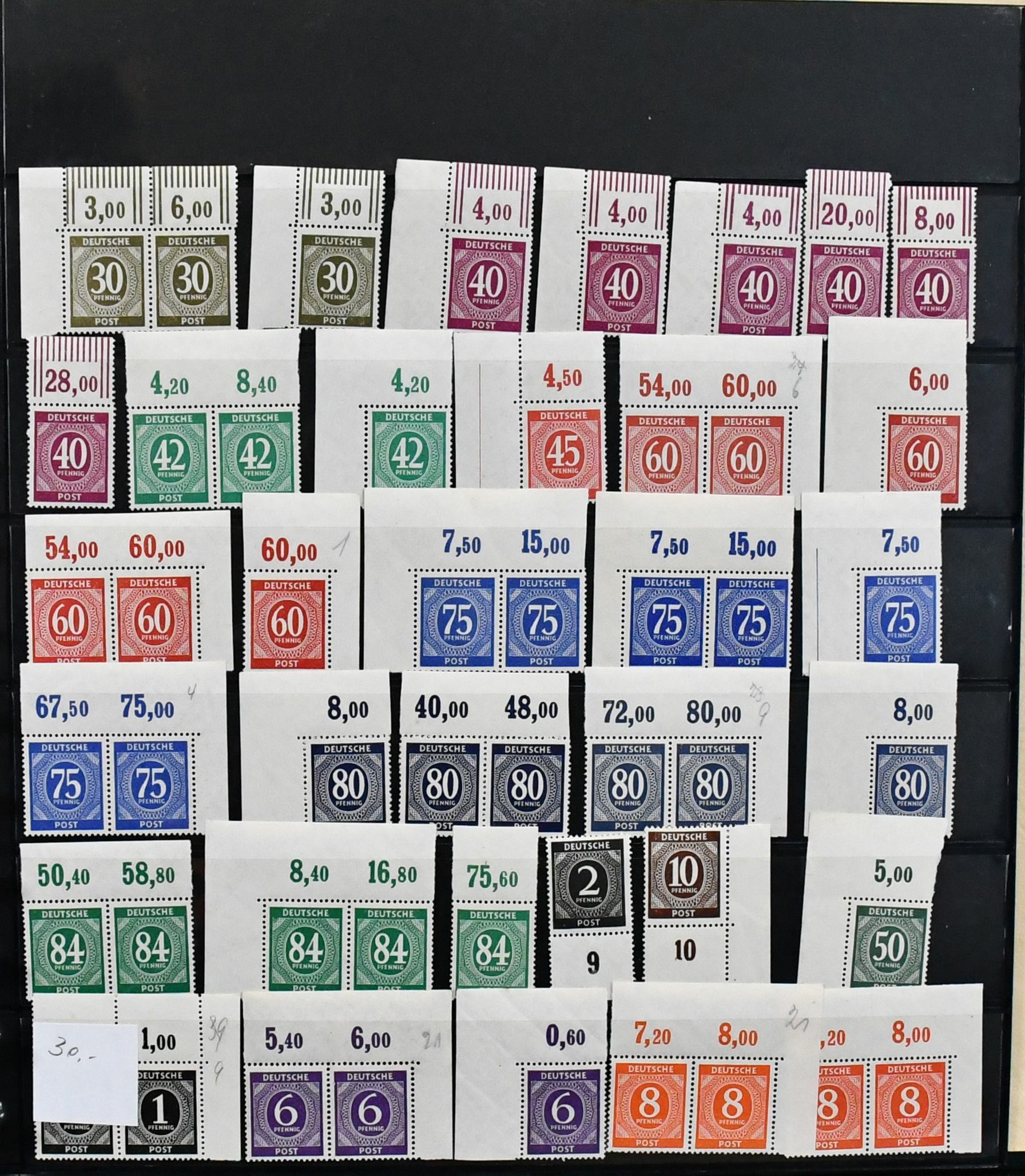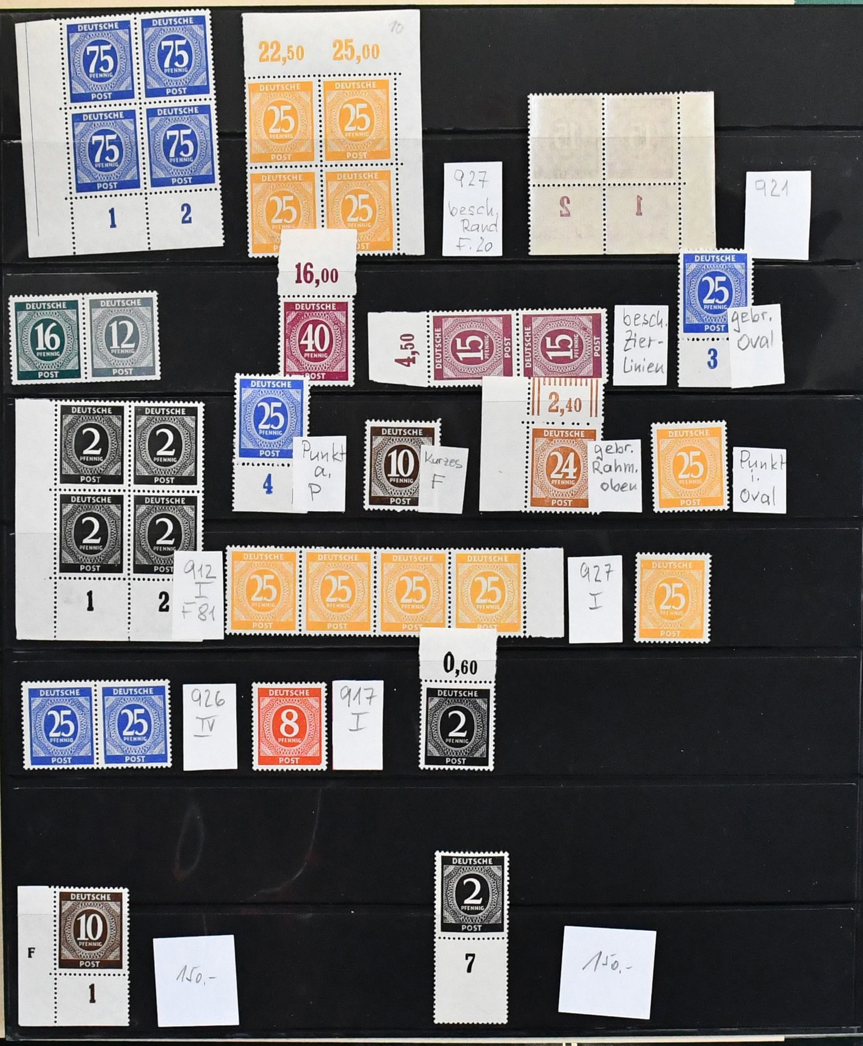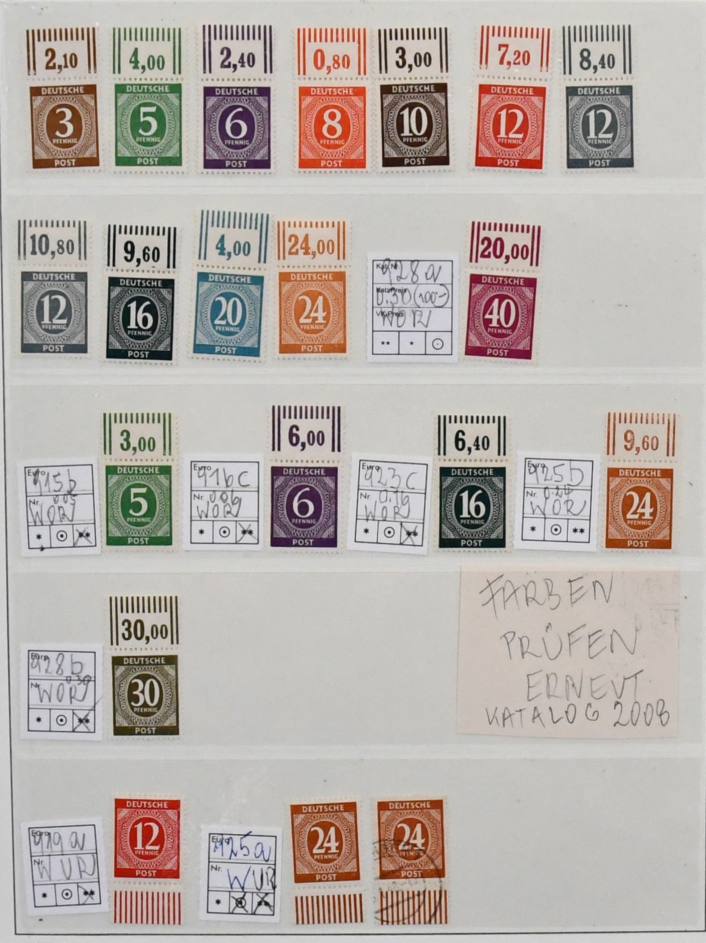Gemeinschaftsausgabe/Bizone, Zusammenstellung von 1200 Werten, mit AM-Post, teils spezialisiert, vielen Aufdruckwerten inkl. Nr. 37I/IIDD postfr., gepr. Schlegel BPP (Mi. 100,-), Gemeinschaftsausgabe Nr. 933PORdgz in zwei versch. Farben, einmal postfr., einmal Rand ungebr. (Mi. rund 300,-) usw.
