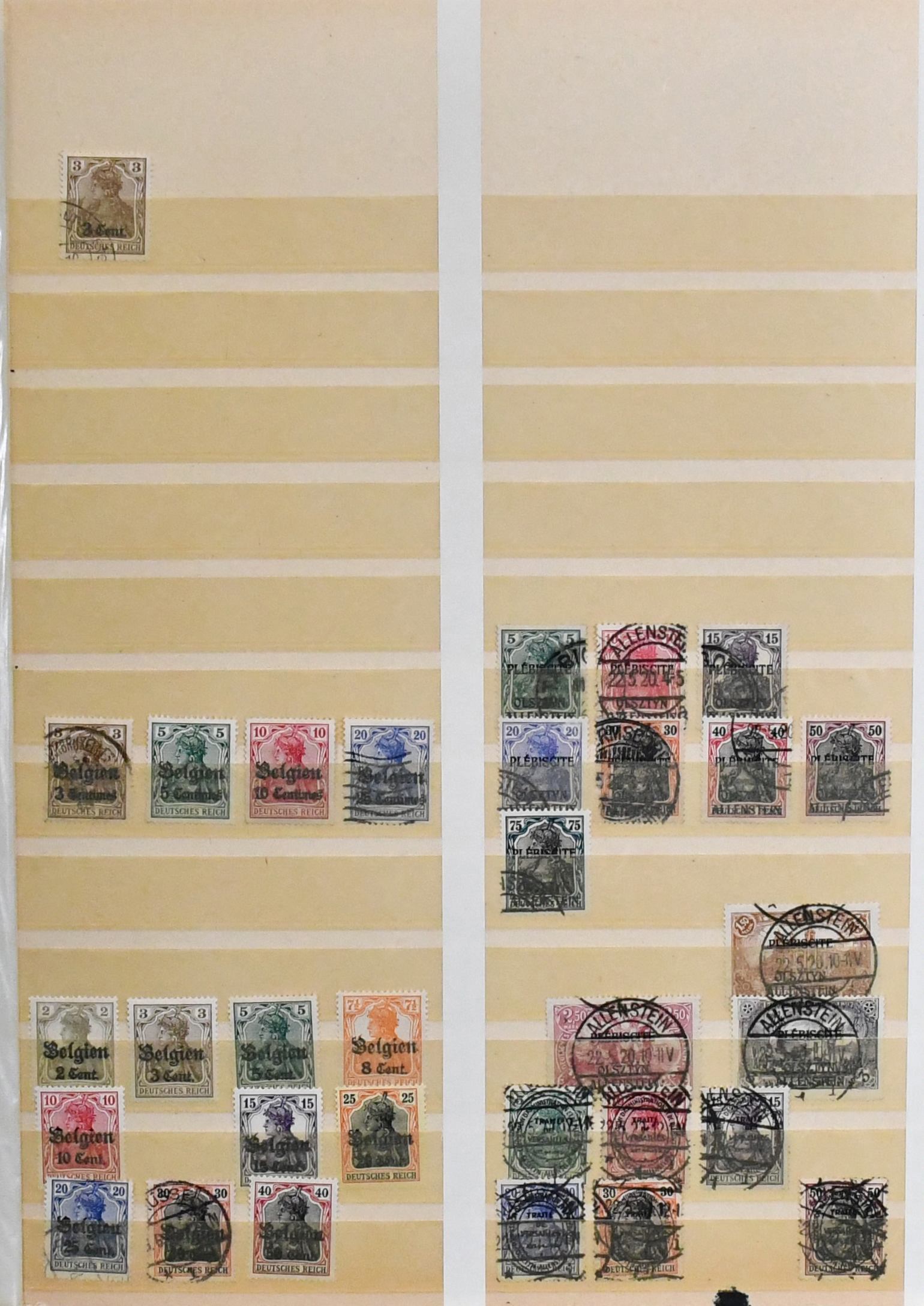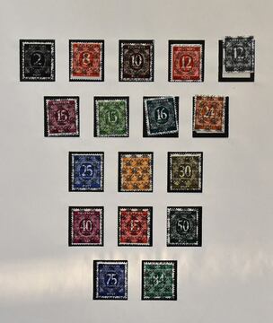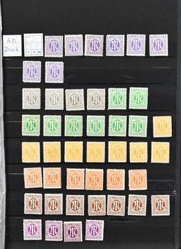 AM-Post, Partie von rund 800 postfr. u. gest. Werten ex Nr. 1/35, alle nach Papiersorten und Zähnungen spezialisiert. Der wertmäßige Schwerpunkt liegt bei den gest. Werten, inkl. Nr. 10G, Nr. 12 mit zehn Werten, 14G mehrf., viel deutscher Druck, u.a. mit Nr. 19D, 20Ax mehrf., 24C, 26A/D, 27A/C, 32/33 mehrf., alles gestempelt, Nr. 34 fünfmal postfr., usw. Mi. 6000,-