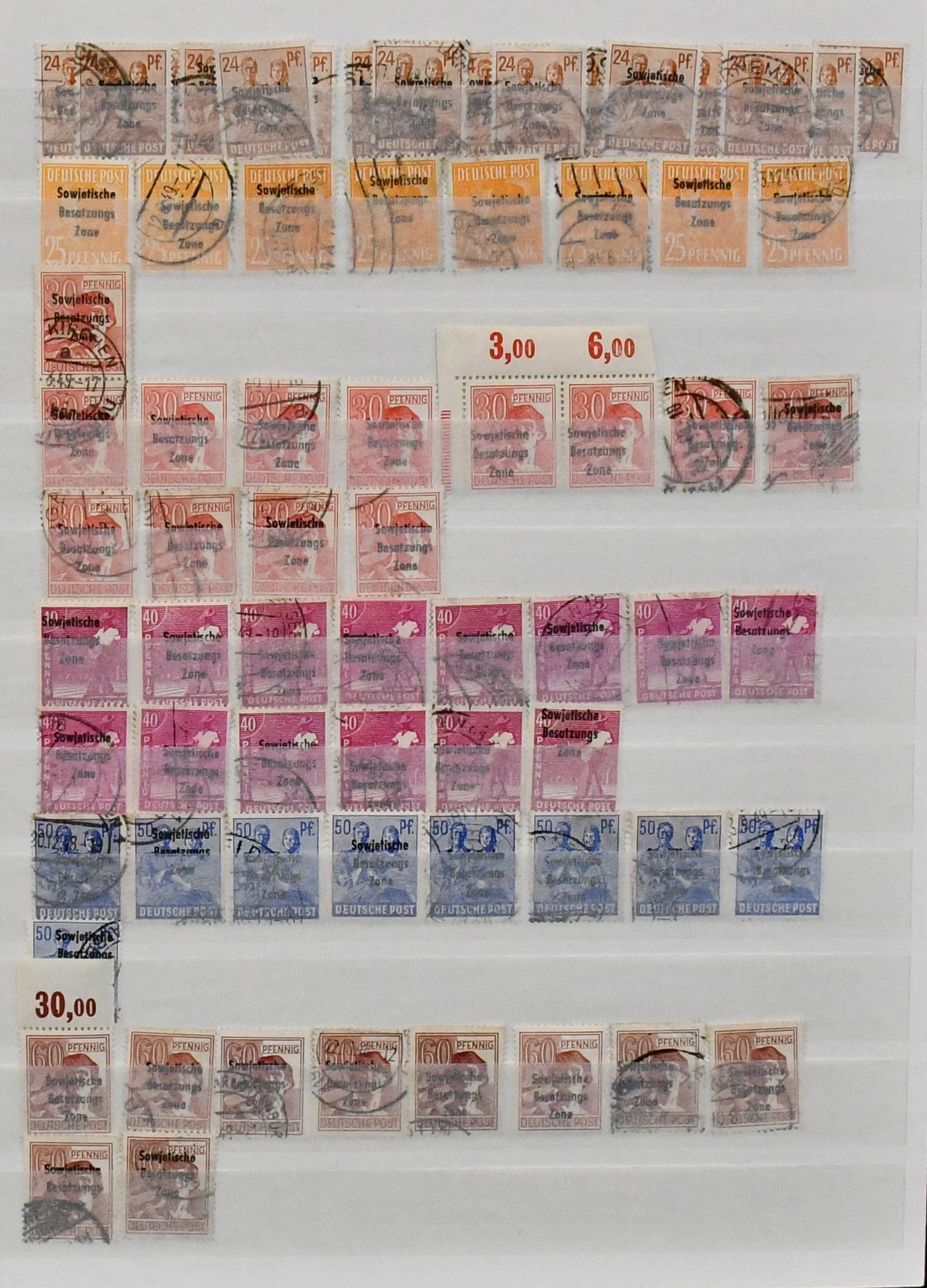 SBZ, Zusammenstellung von etwa 800 Werten, dabei u.a. 28 Werte ex Nr. 20/28, Nr. 29/34, teils zweifach, usw.