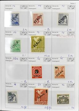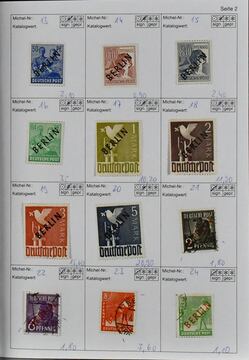 Berlin, gestempelte Slg., beginnend mit den Aufdruckwerten, in zwei SAFE-Vordruckalben. Dabei Nr. 21/32, 35/41, 61/63 usw., von 1950-1983 (ohne Nr. 109) kpl., sowie zusätzlich von 1960-1983 postfr. kpl. Mi. 4700,-, Los 7075 der 219. Auktion, alter Ausruf 300,-
