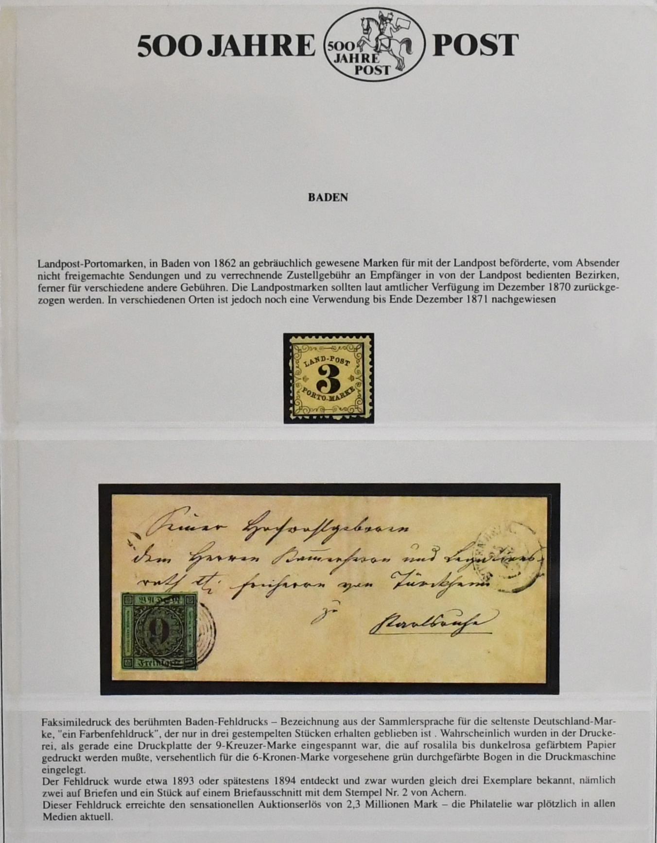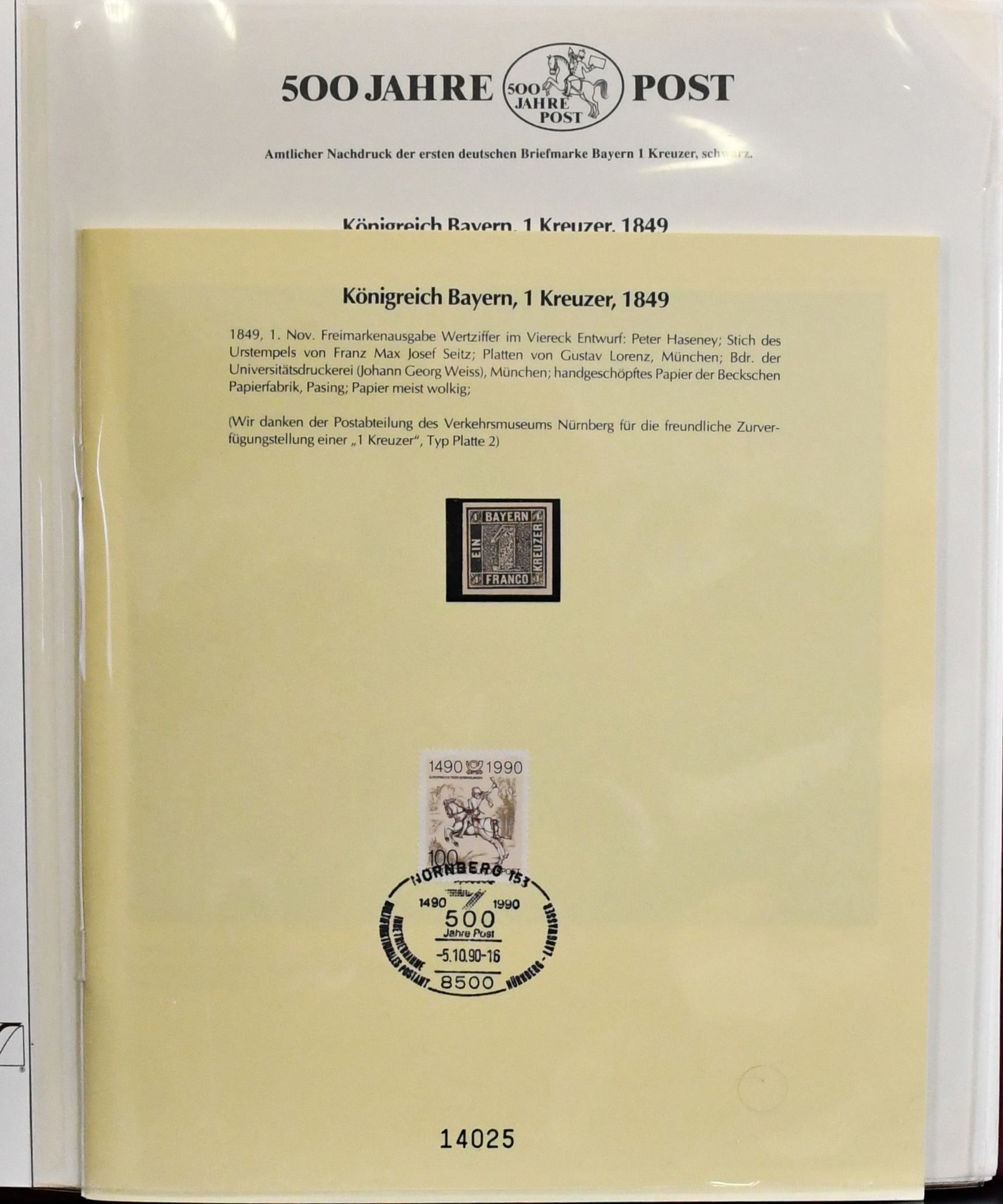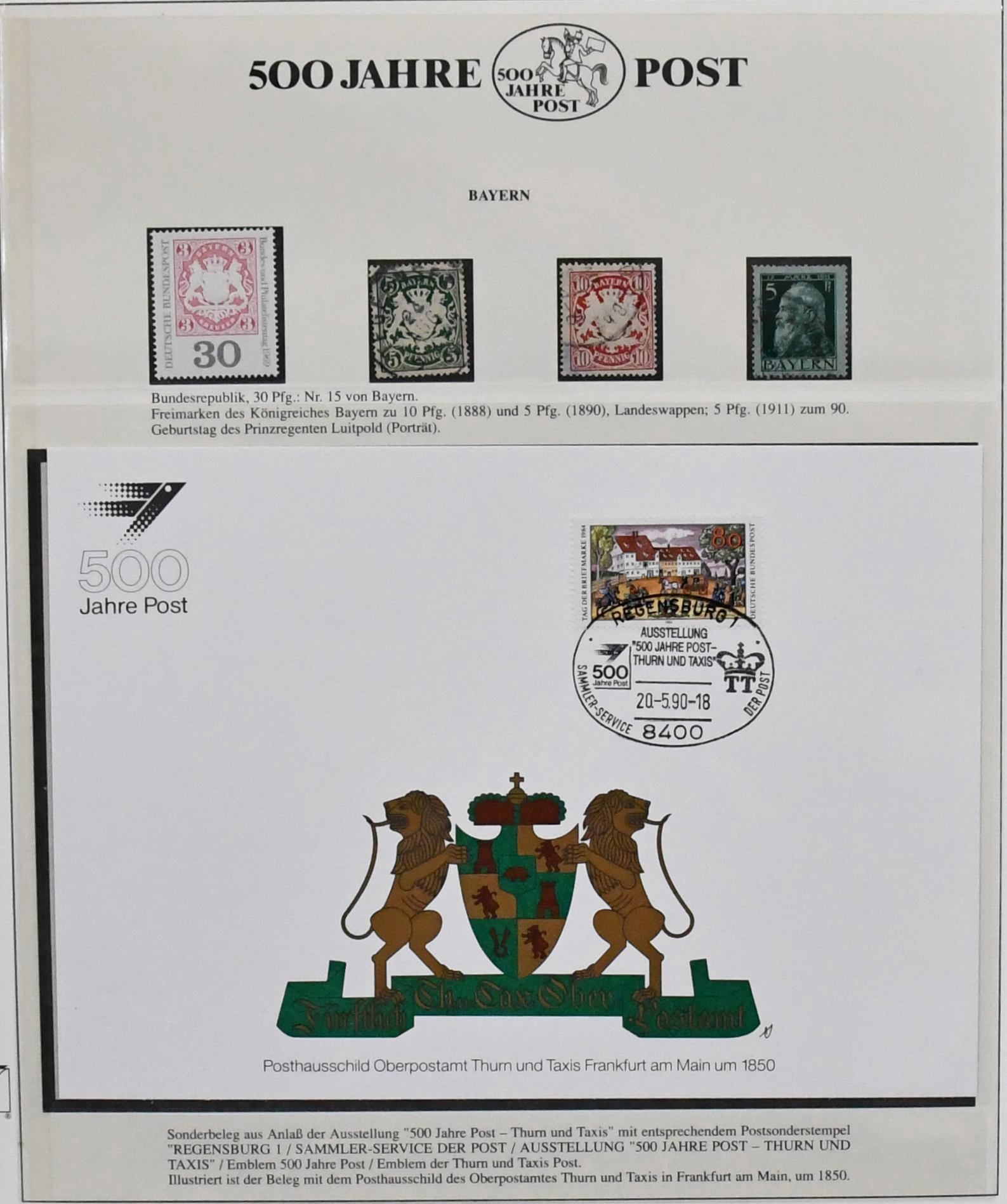 "500 Jahre Post", umfangreiche, meist postfrische, durch eine Vielzahl von Belegen aufgelockerte Slg. aus Sieger-Abo, in drei dicken, neuwertigen Lindner-Vordruckalben