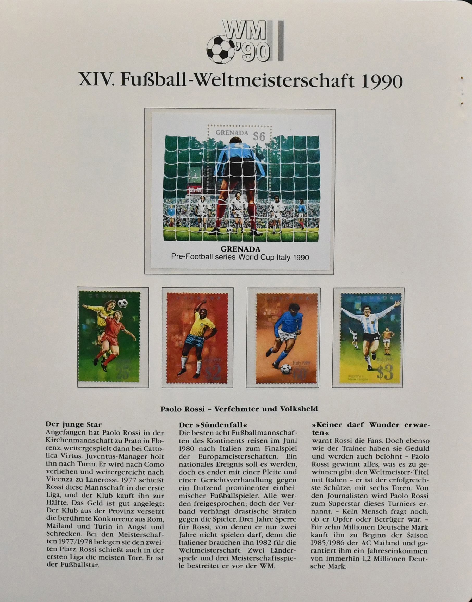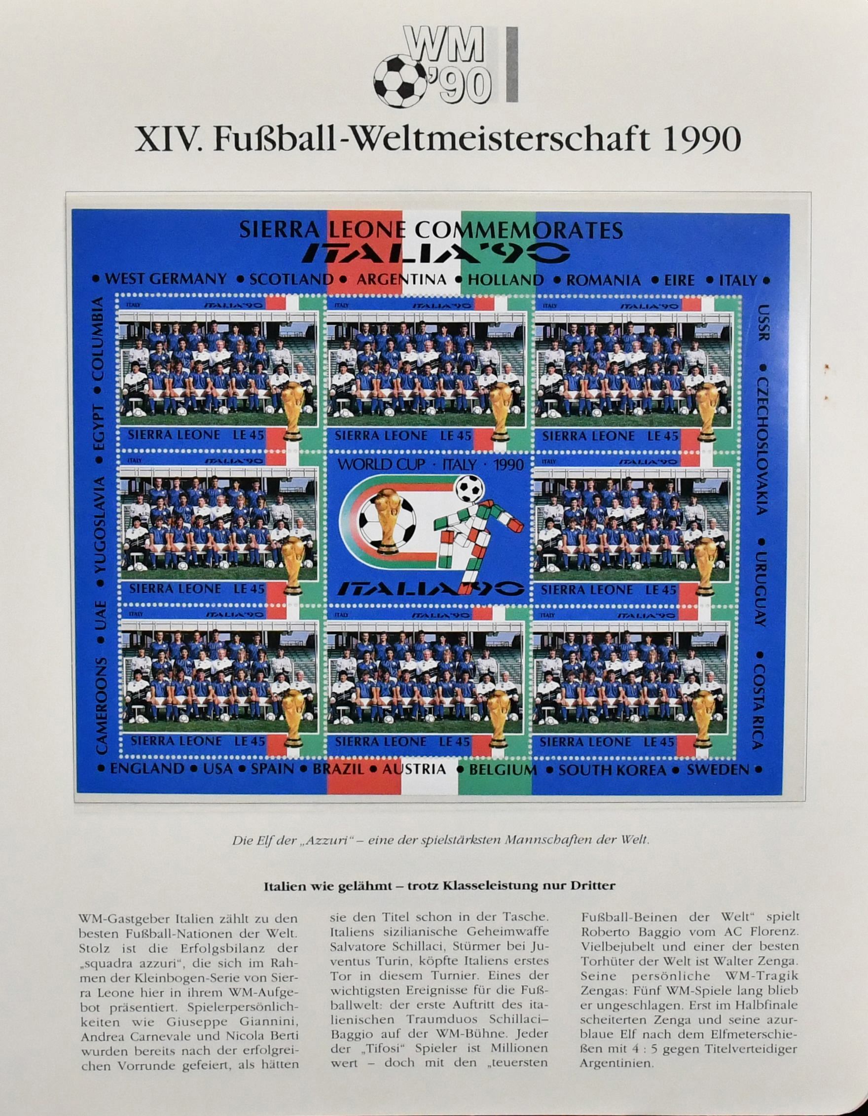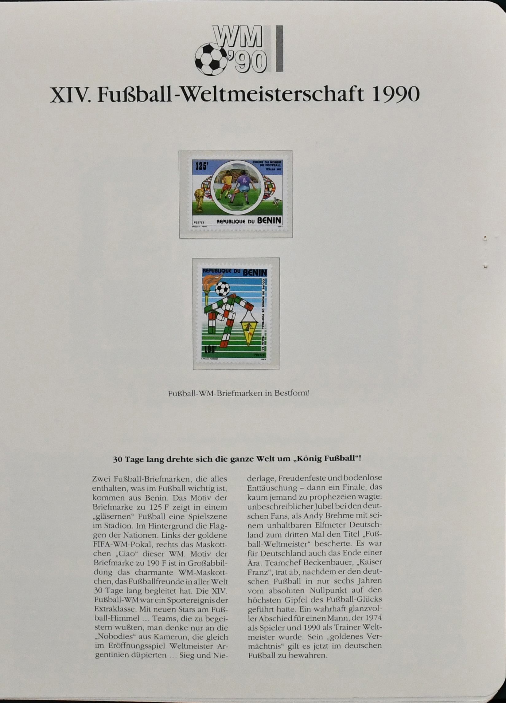 Fußball-WM 1990, Borek-Abo-Slg. auf 228 Vordrucken in drei Borek-Ringbindern, dabei postfr. Ausgaben, viel Übersee, zwei Numisbriefe, Belege