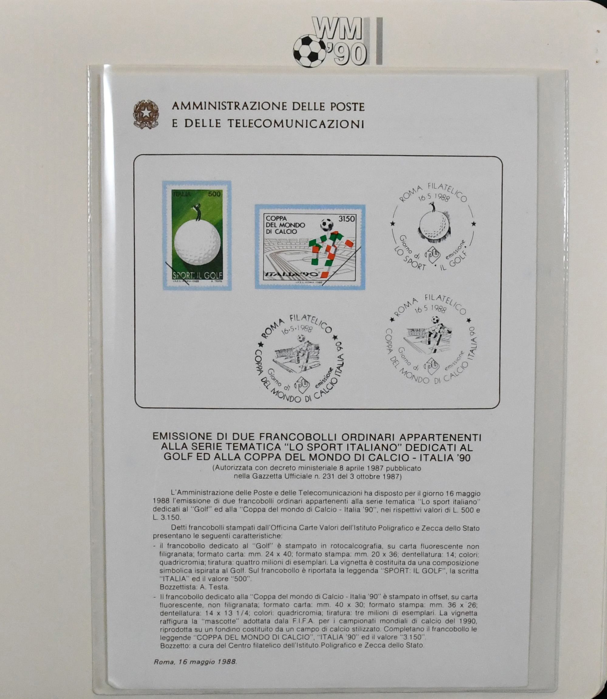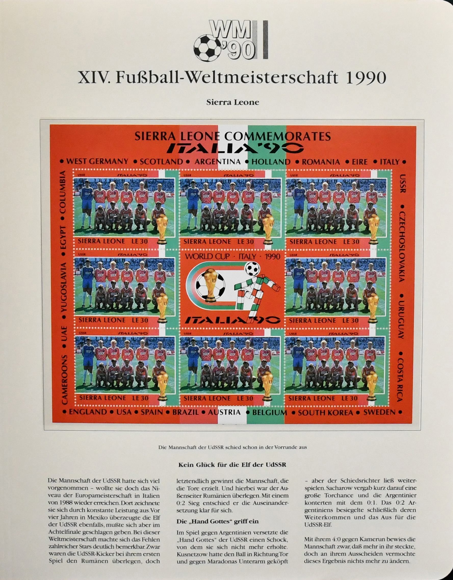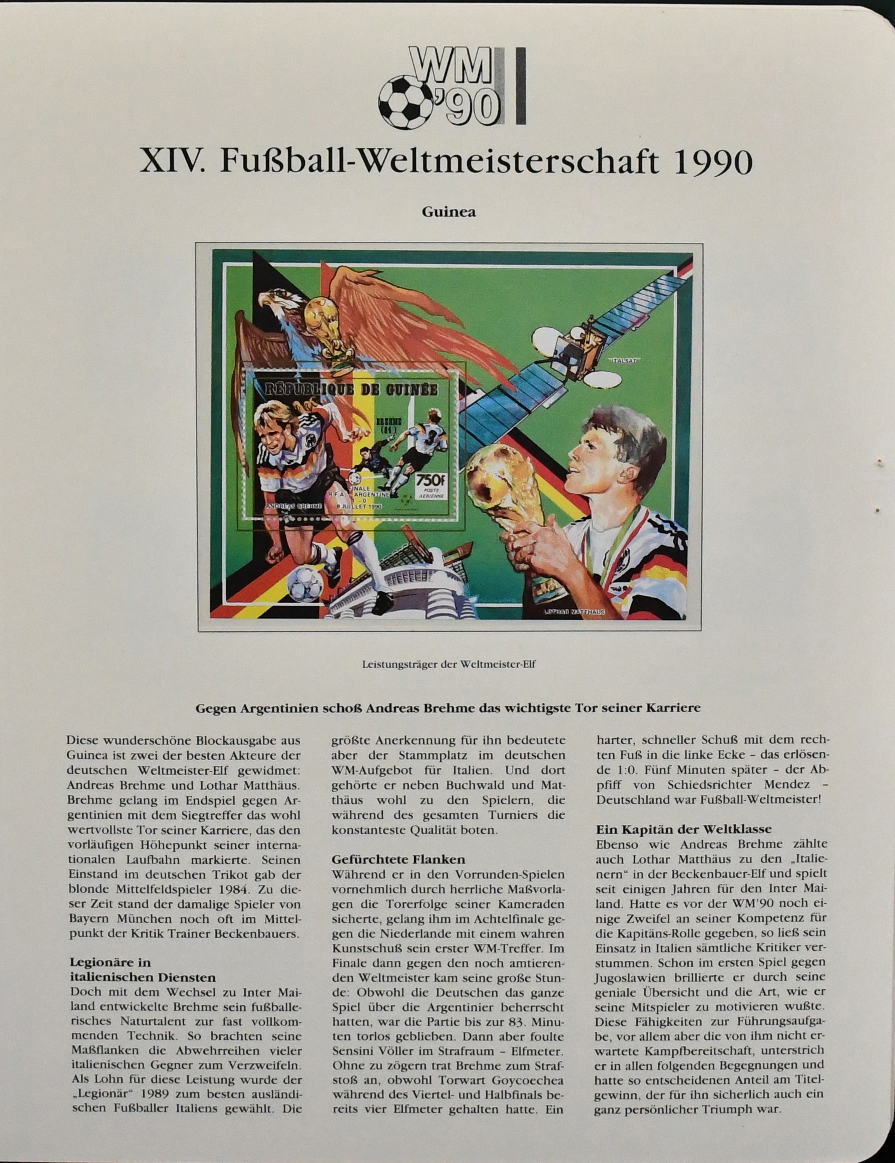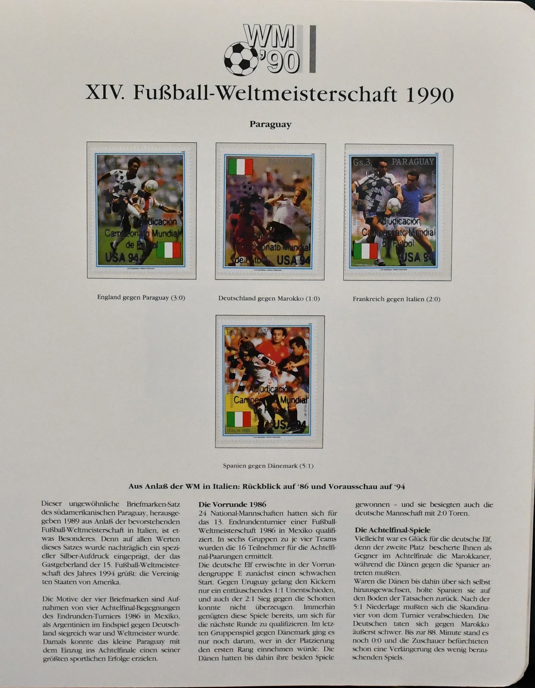 Fußball-WM 1990, Borek-Abo-Slg. auf 228 Vordrucken in drei Borek-Ringbindern, dabei postfr. Ausgaben, viel Übersee, zwei Numisbriefe, Belege