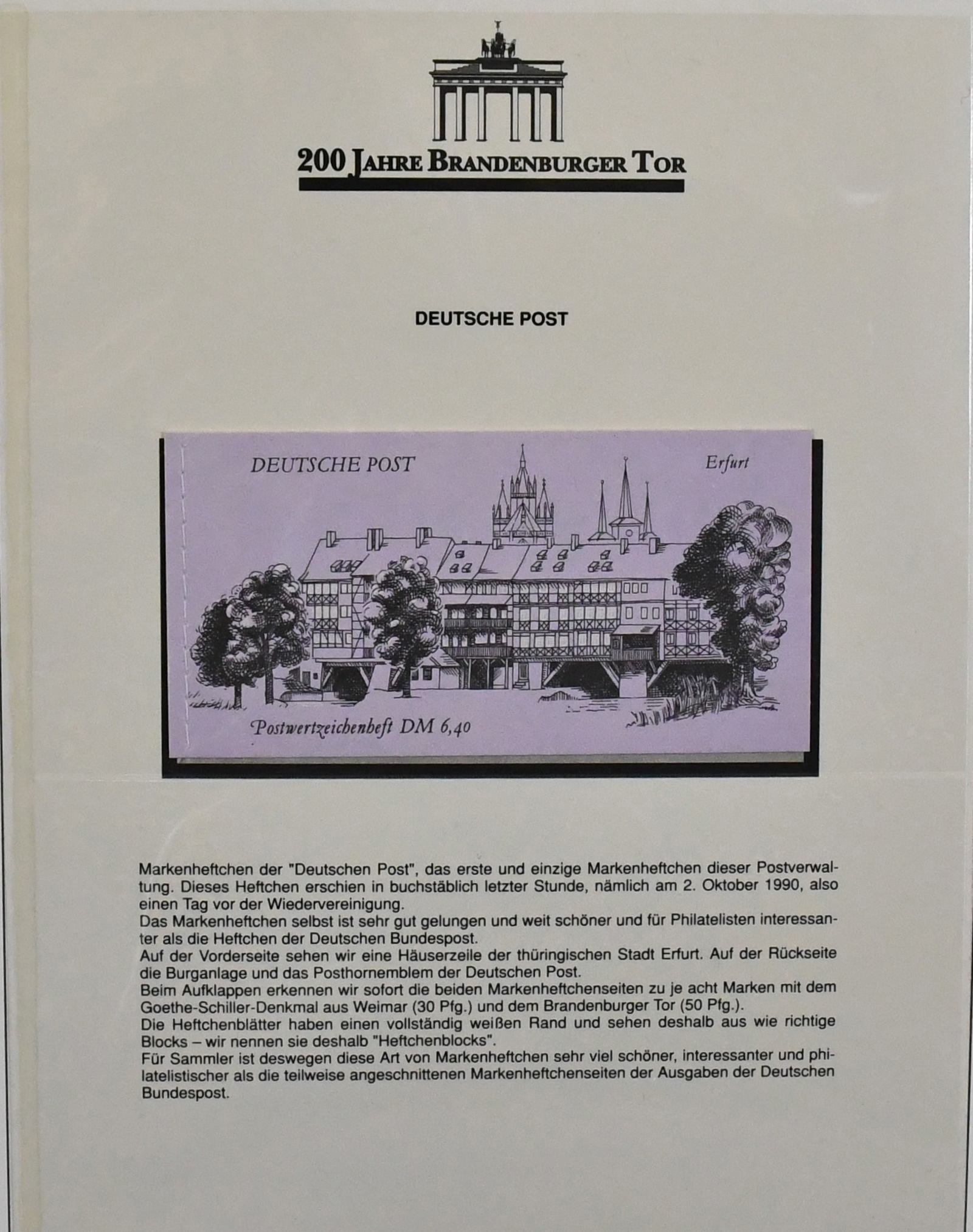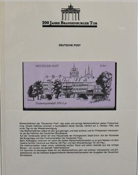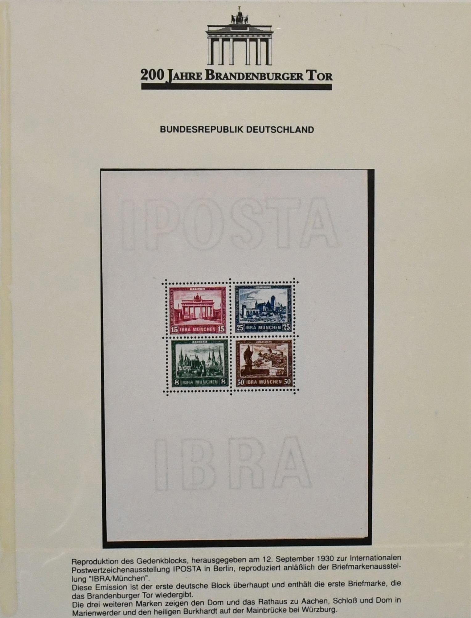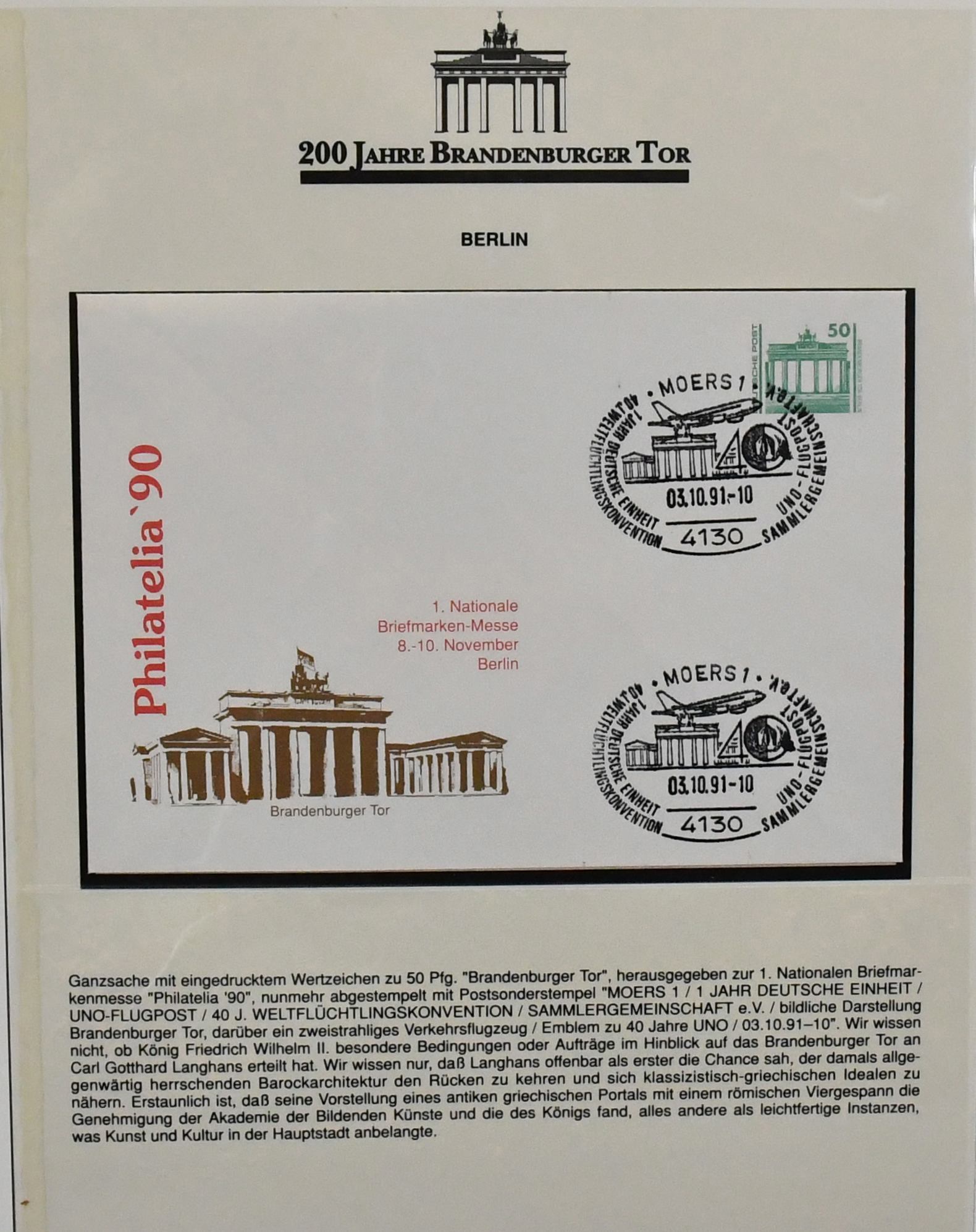 "200 Jahre Brandenburger Tor", Sieger-Abo-Sammlung auf 79 Vordrucken in zwei Lindner-Ringbindern, dabei postfr. Ausgaben und Belege aus aller Welt, sowie Medaille