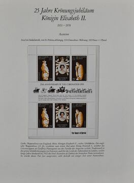"25-jähriges Krönungsjubiläum Königin Elisabeth II.", umfangreiche postfr. Slg. mit etwa 95 Blöcken und Kleinbögen, einigen Markenheftchen usw., in zwei reichhaltig illustrierten Borek-Vordruckalben