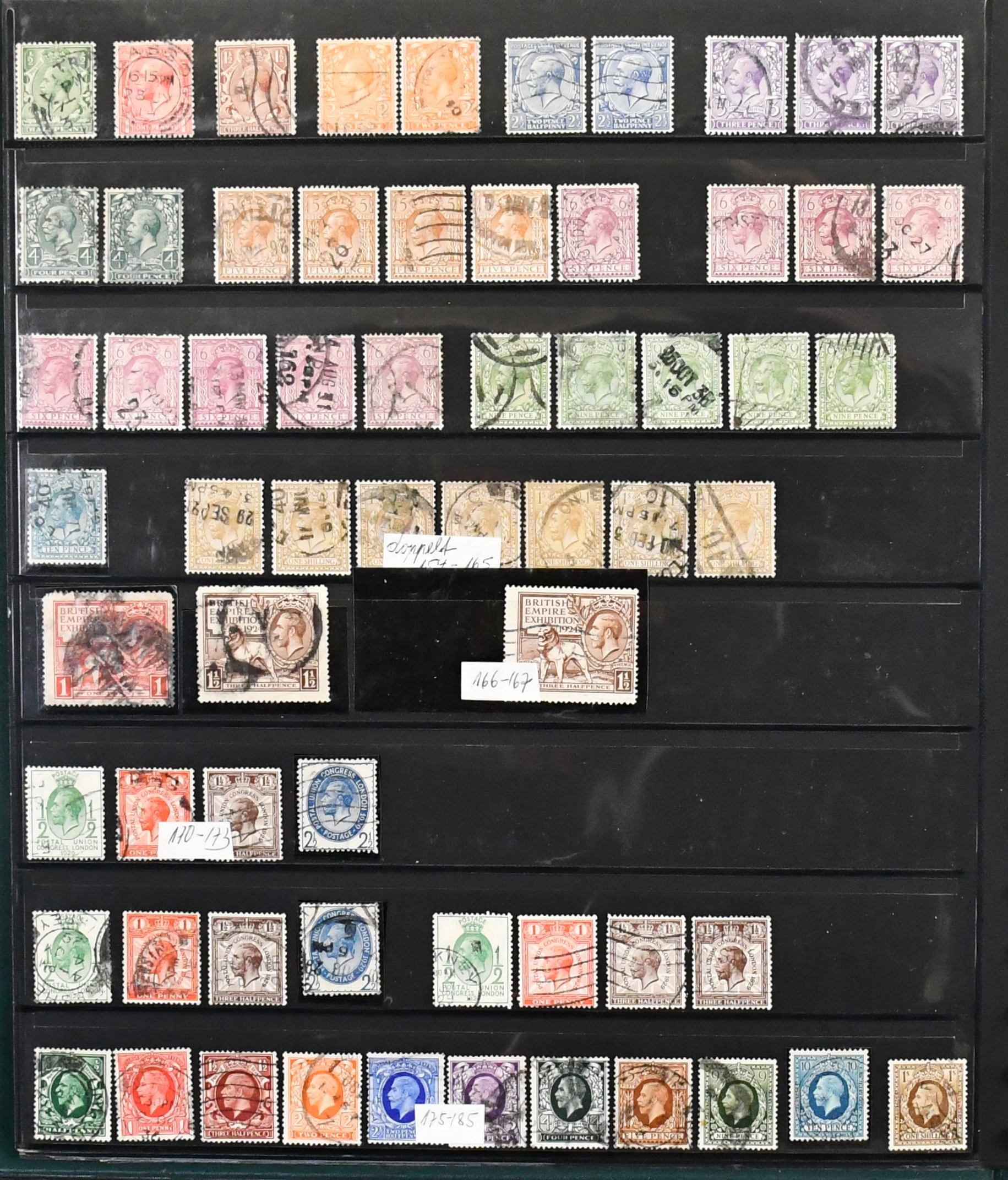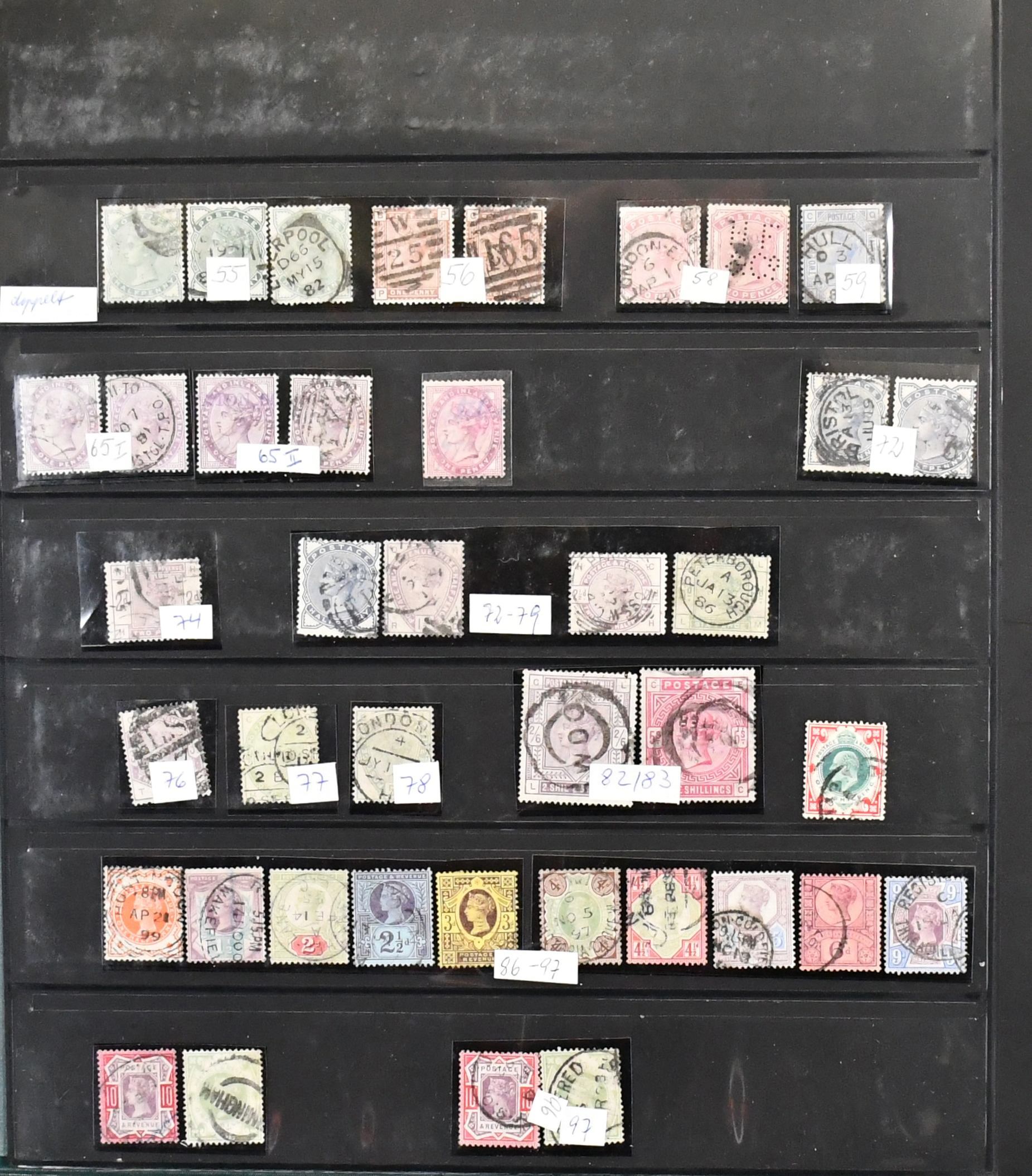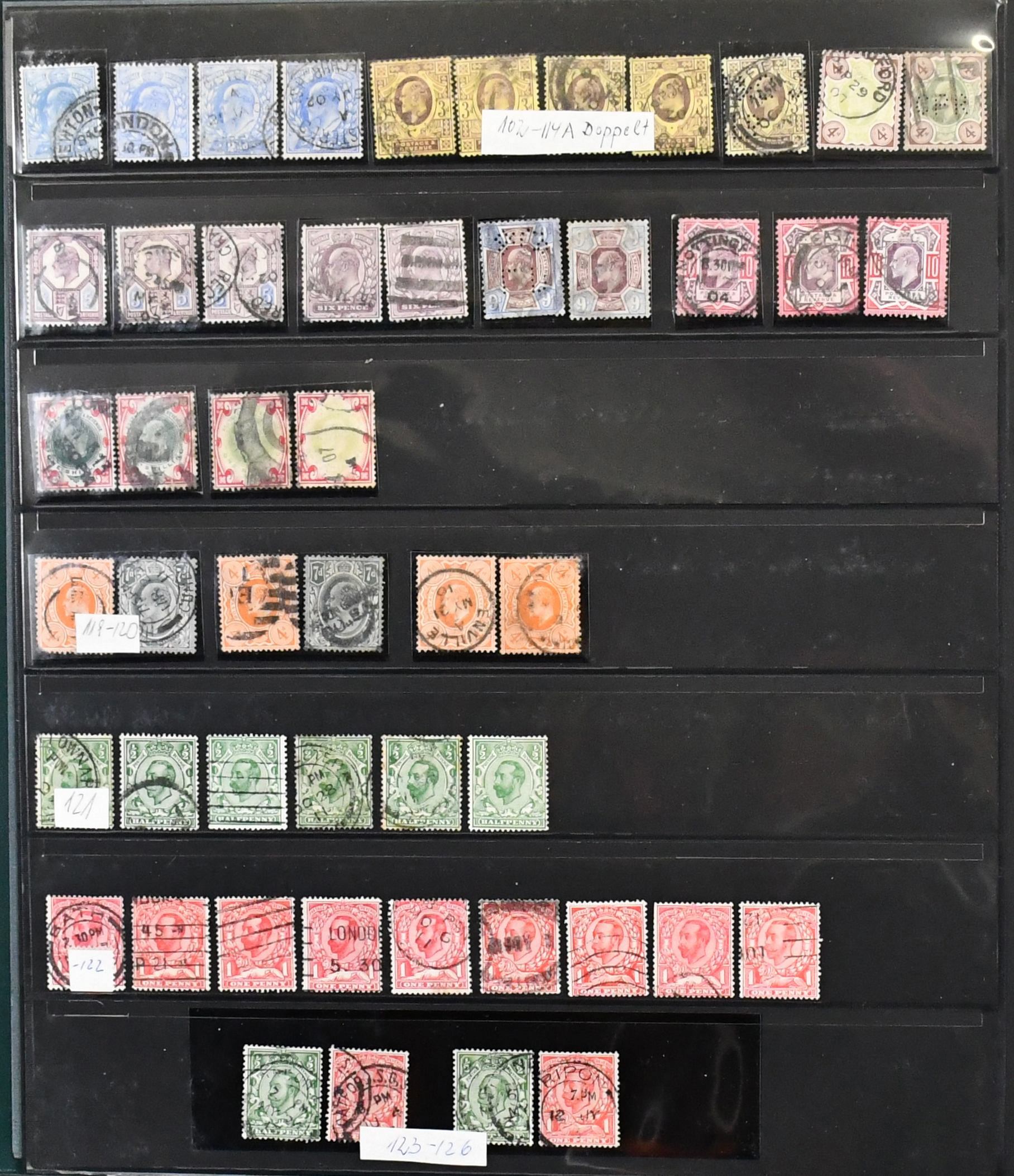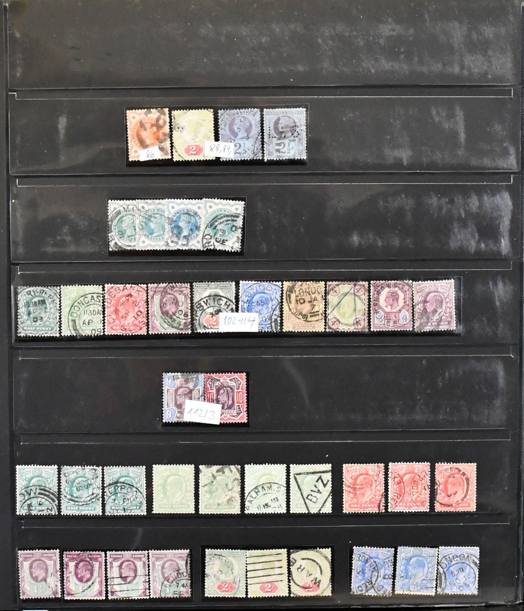 Großbritannien, 1841/1970, Slg. ab Klassik, mit u.a. Nr. 23/25, 29/30, 72/79, 82/83, 86/97, 100/14, je gestempelt, usw., im Lindner-Ringbinder. Mi. 3500,-