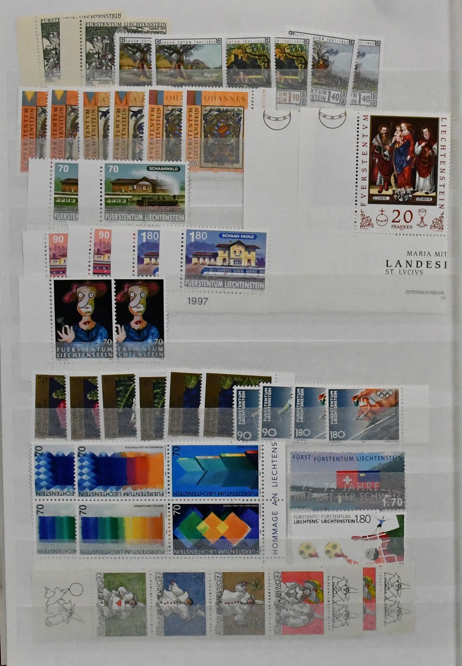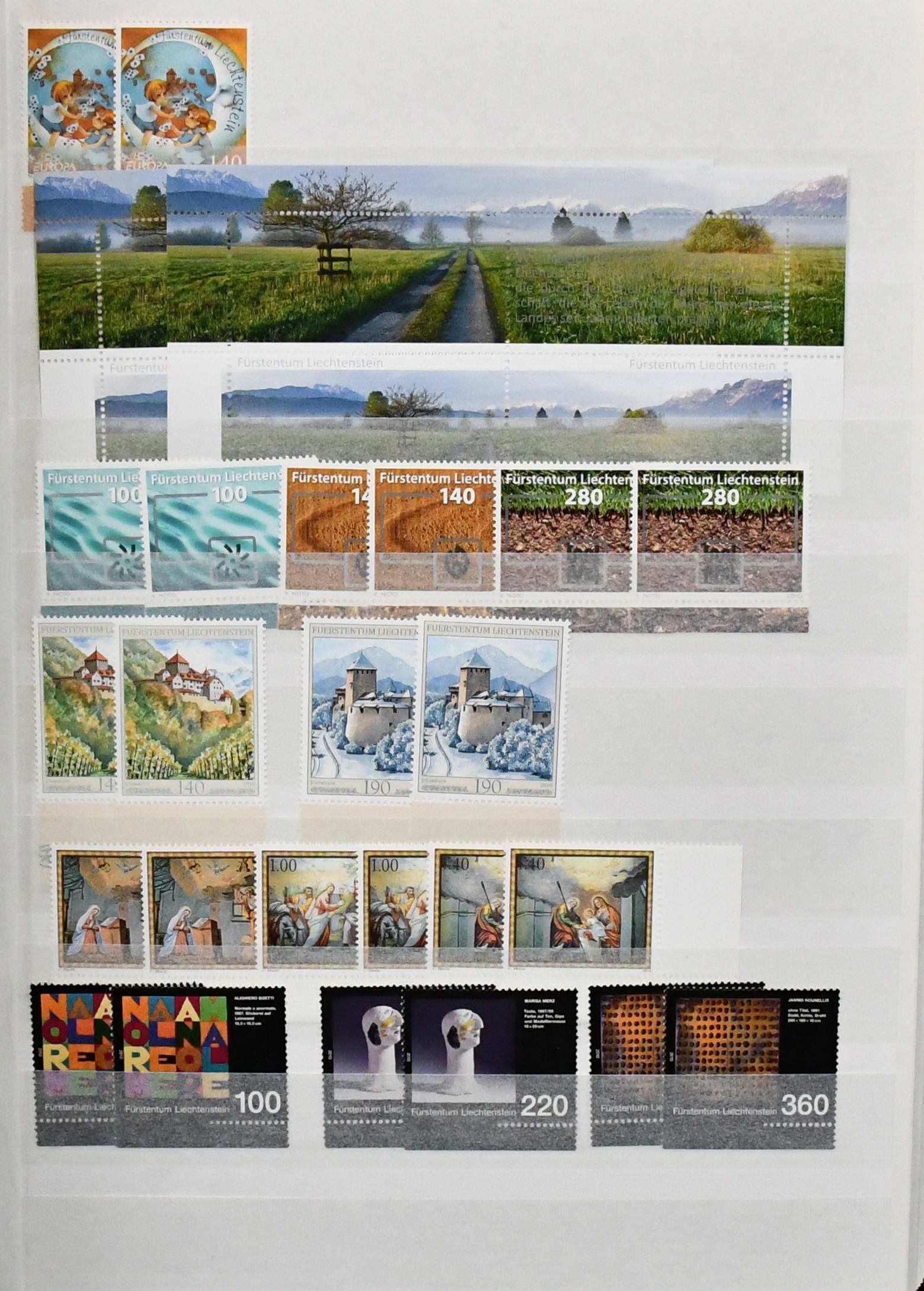 Liechtenstein, 1993/2016, postfrische Slg., meist per zwei, aber nicht ganz kpl. Die enthaltene gültige Nominale ab 1996 beträgt bereits 1640,- SFr. (= 1740,- Euro)
