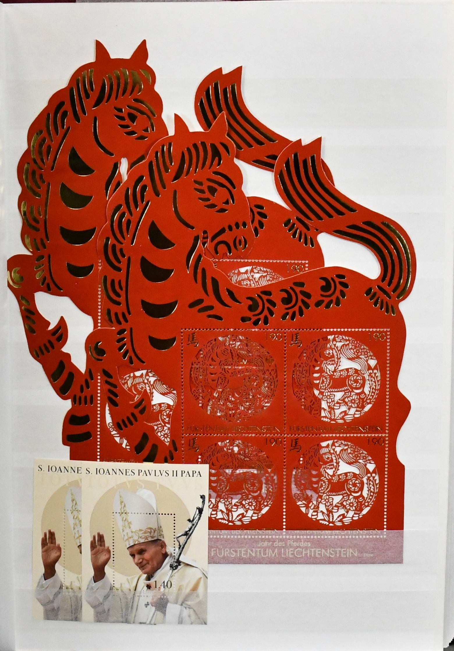 Liechtenstein, Slg. postfrischer Kleinbögen ab 1996, u.a. mit Nr. 1136, 1151, 1245/47, 1259/61, 1281/82 usw. Der gültige Frankaturwert beträgt 380,- SFr. (= 400,- Euro)