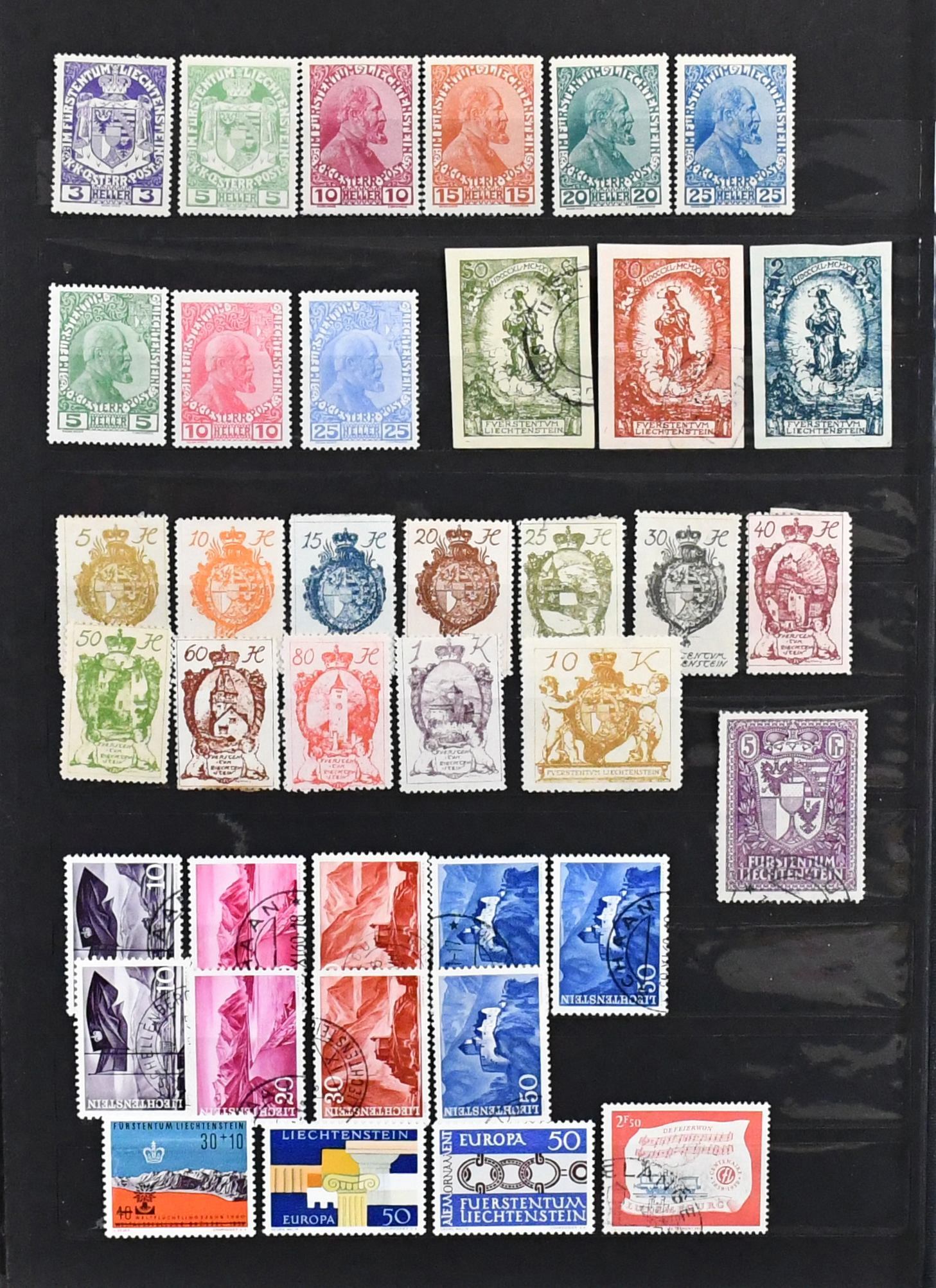 Liechtenstein, 1912/2000, umfangreiche, hauptsächlich gestempelte (wenige Werte auch ungebr.) Sammlung im dicken Leuchtturm-Vordruckalbum. Dabei Nr. 1/3 gest. und ungebr. kpl., 47/52, 59/60, 65/81 kpl. gest. (Mi. 500,-), 108/11 u. 113 gest., 182/85, 309 gest. usw., von 1956-2000 gest. quasi kpl. Dazu Dienst ab Nr. 1/5. Mi. 6000,-