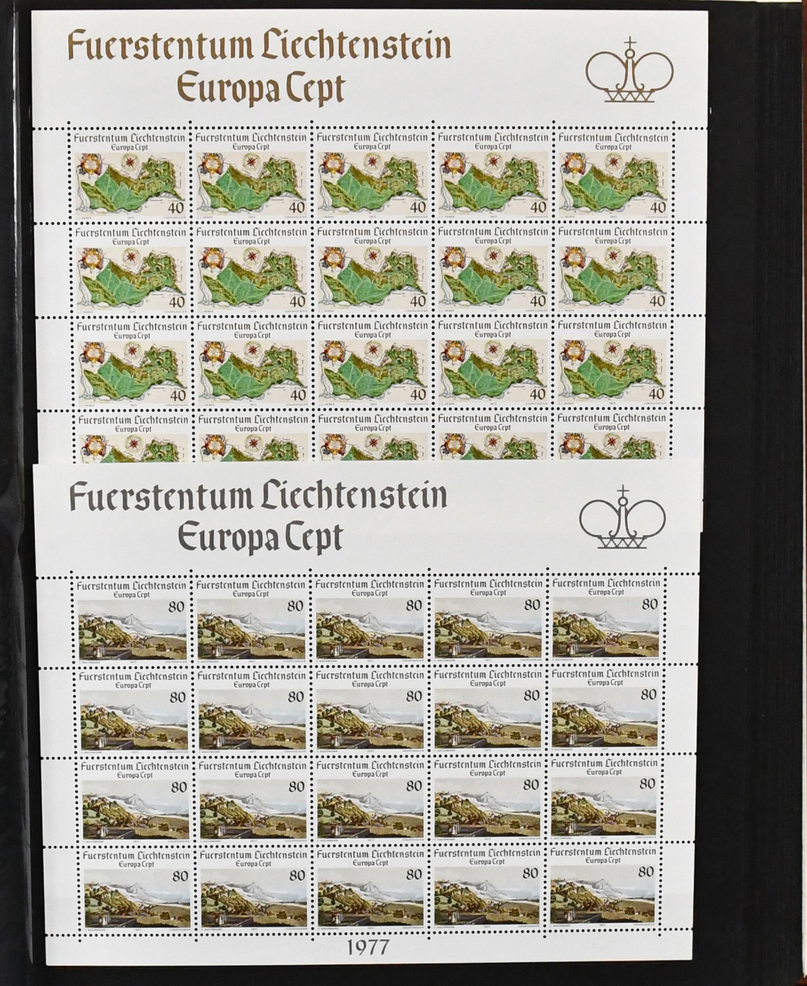 Liechtenstein, 1912-1992, reichhaltige Slg., mit zusätzlich Belegen etc., ab Nr. 1-3, 94-103, 322-25, CEPT 1960 auf FDC, Kleinbögen wie Nr. 614 u. 634 etc.