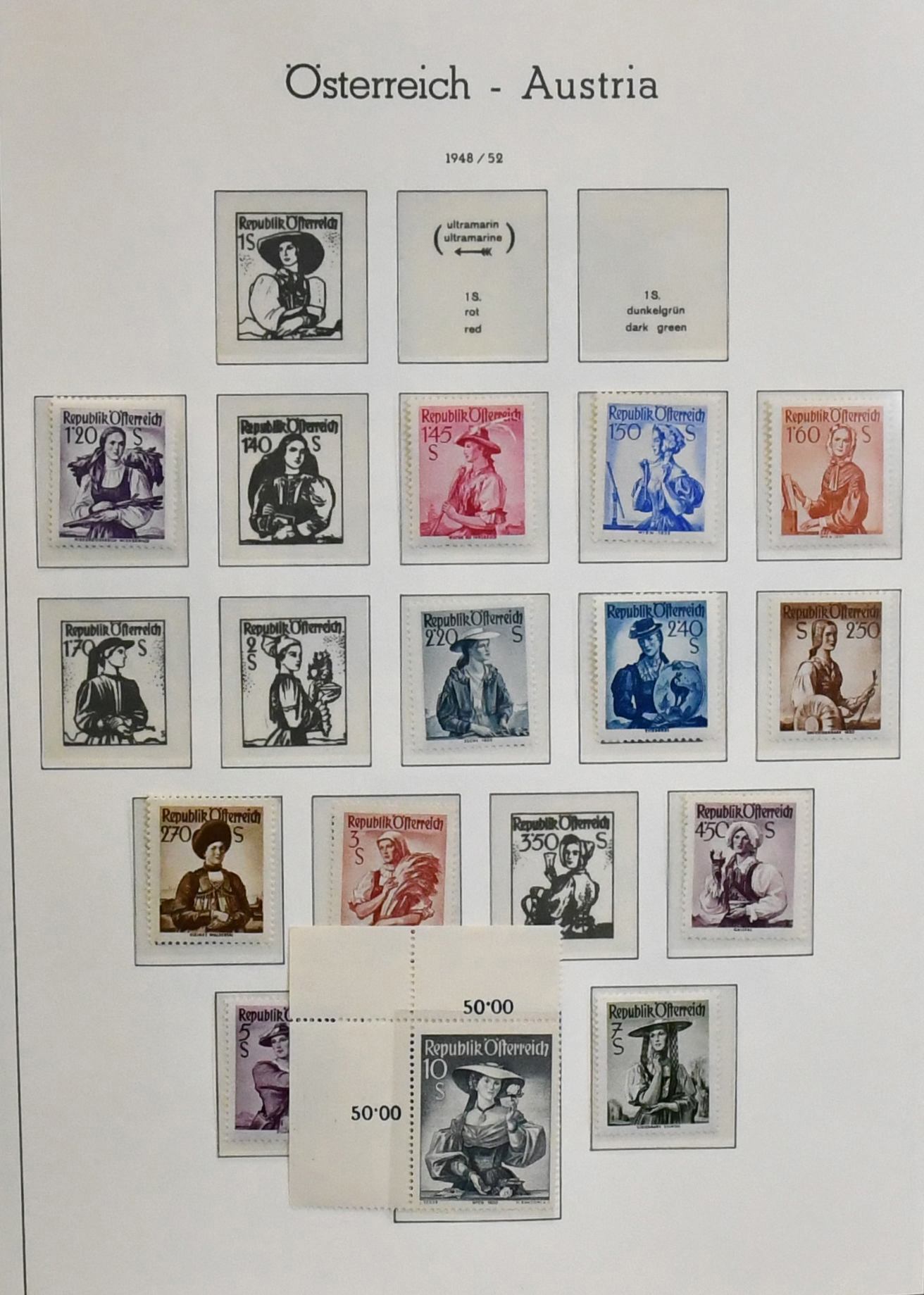 Österreich, 1945/70, postfr. Slg. mit u.a. Nr. 952/54, 960/63 usw., von 1954-1970 kpl., auf Borek-Vordrucken. Mi. über 1000,-
