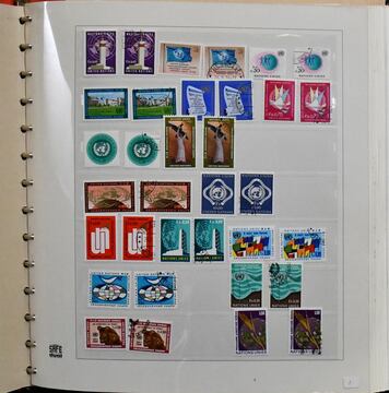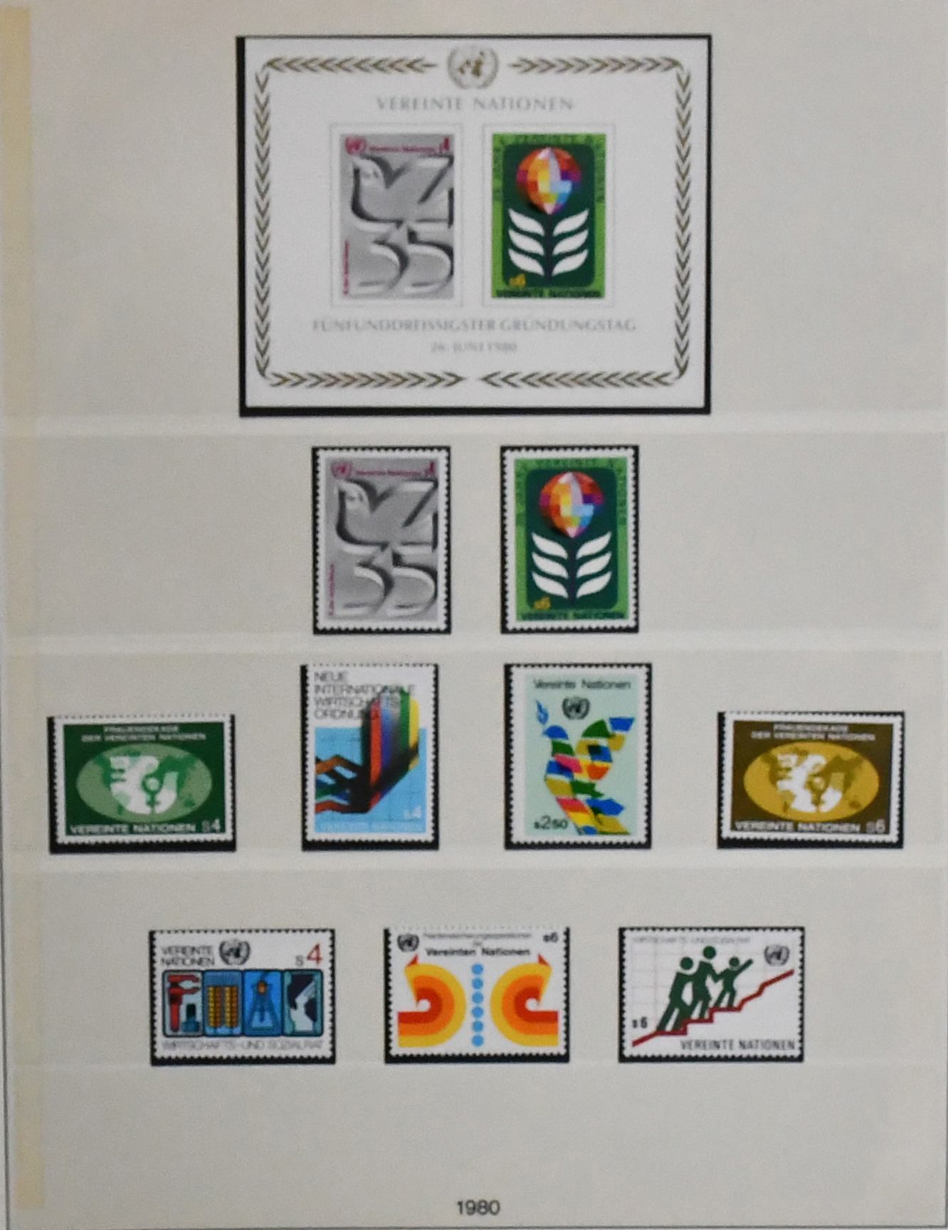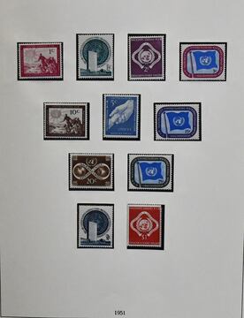Vereinte Nationen, postfr. Slg. im Leuchtturm-Falzlos-Vordruckalbum, dabei New York, Genf und Wien je ab Beginn bis 1985 kpl. (NY Bl. 1 nur gest.), auch sehr viele Zusammendrucke und Kleinbögen