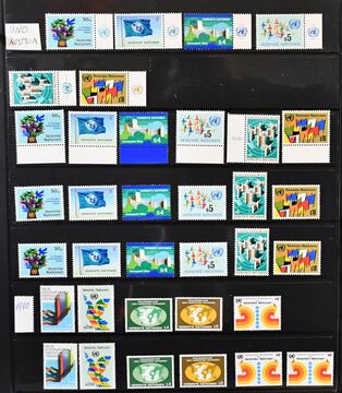 Vereinte Nationen, postfr. Slg. mit Genf 1969/89, New York 1951/90 inkl. Bl. 1 (Mi. alleine 150,-), und Wien 1979/2000, je offensichtlich kpl., im Klemmbinder, günstig