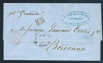 "Reunion-Frankreich", 1859, sauberer Faltbrief von St. Denis nach Bordeaux, hs. "pr. Granada"