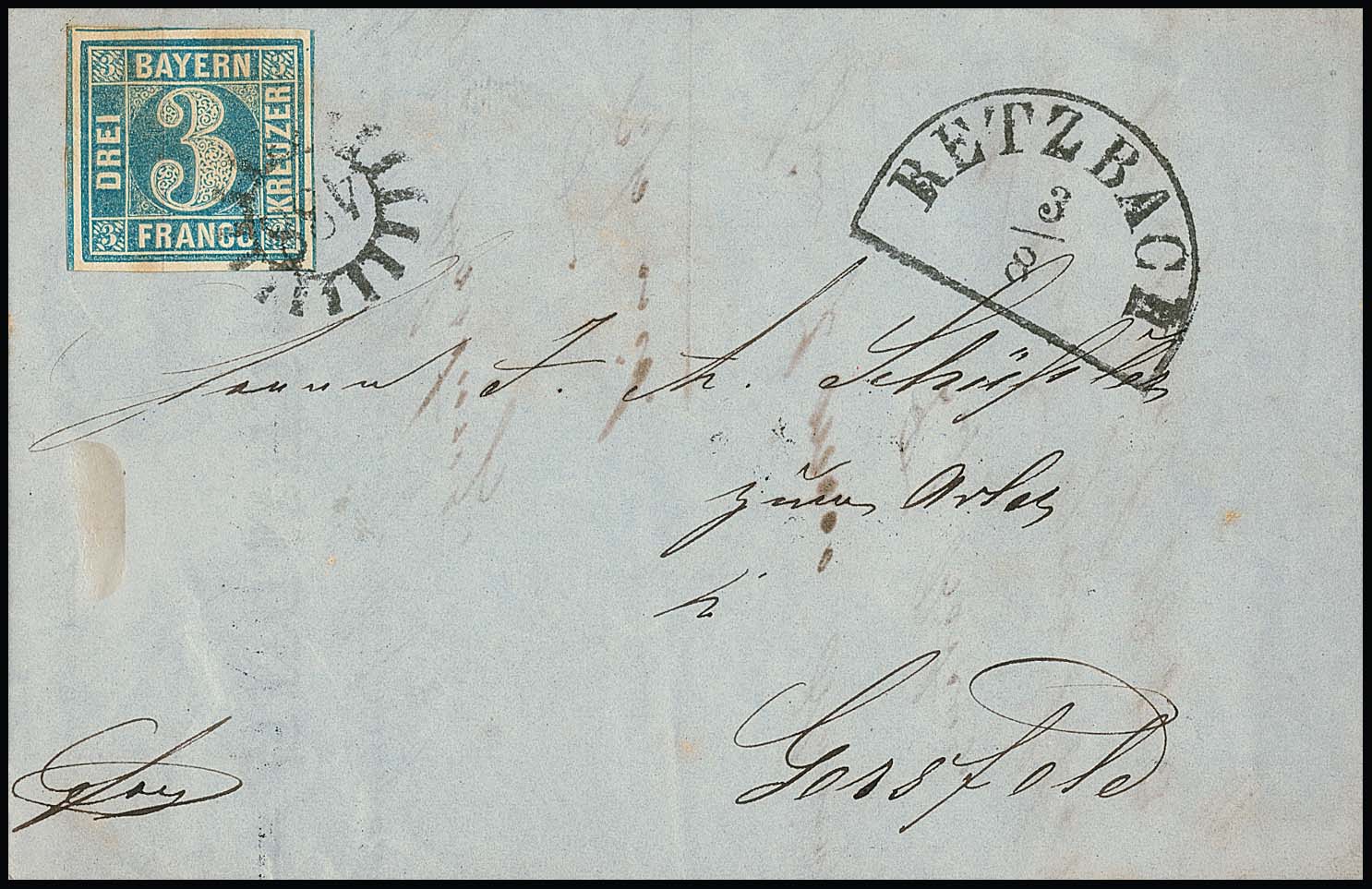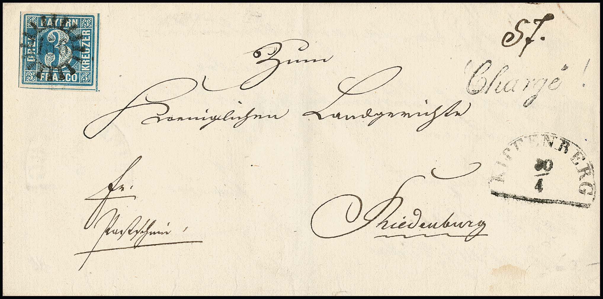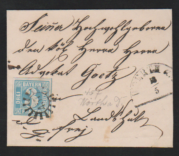 "156", gMR nebst HK "Kipfenberg" auf Pracht-Chargébrief mit 3 Kr. blau