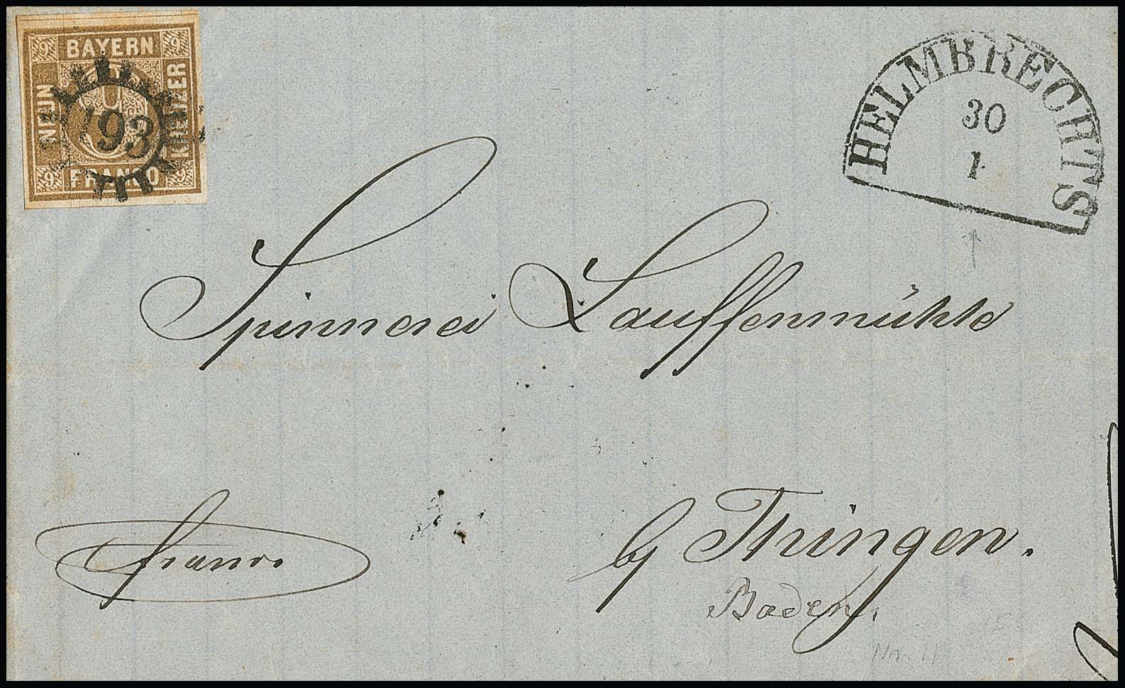 "193", gMR nebst HK "Helmbrechts" klar auf gef. Kabinettbrief 9 Kr. braun