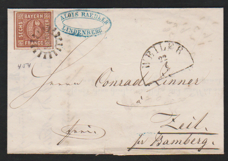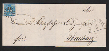 "433", gMR nebst HK "Mallersdorf" auf Kabinettbrief 3 Kr. blau