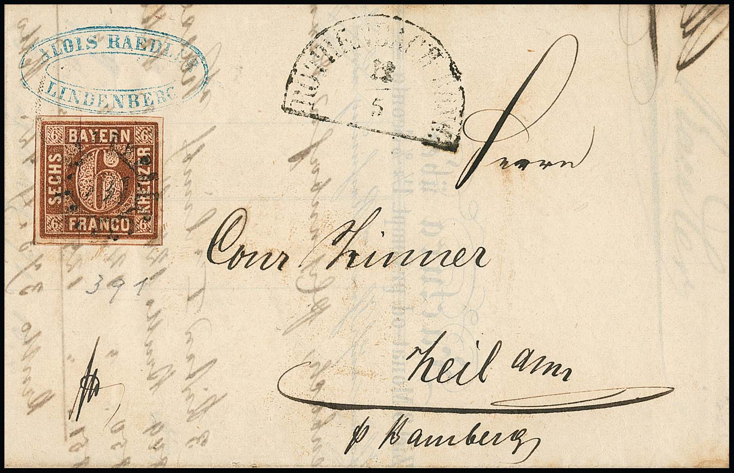 "391", gMR nebst HK "Röthenbach Bahnhof" klar auf Kabinettbrief 6 Kr.