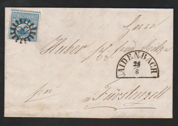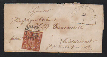 "400", gMR nebst HK "Pleinfeld" auf kleinem Brief (Gebrauchserhaltung) mit 6 Kr. braun
