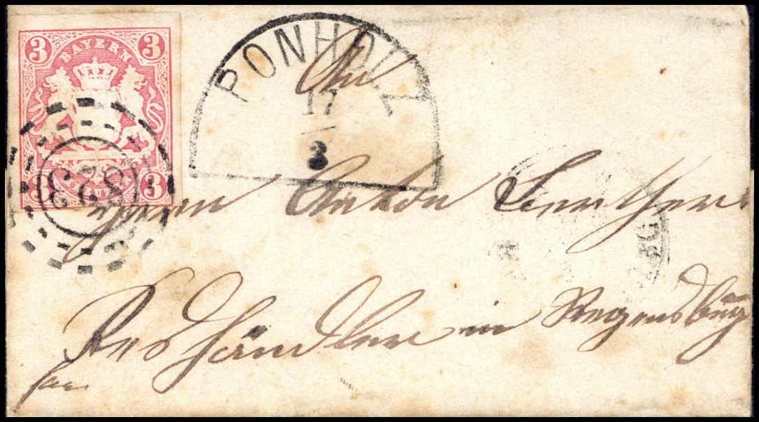 "823", oMR nebst HK "Ponholz" klar auf kleinem Brief 3 Kr. (kl. Mängel)
