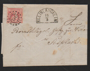 "756", klarer oMR, nebst HK "Kleinlangheim", auf Brief (dieser leichte Gebrauchsspuren) mit Prachtstück 3 Kr.