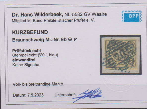 1/3 Sgr. schwarz, gestempeltes Kabinettstück, sign. Brettl. Mi. 450,-