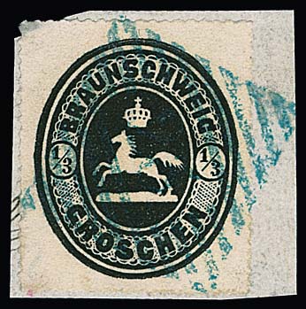 1/3 Gr. schwarz auf Kabinettbriefstück mit besserem blauem NS "23" (Hohegeiss), sign. Richter, Köhler. Mi. 480,- +