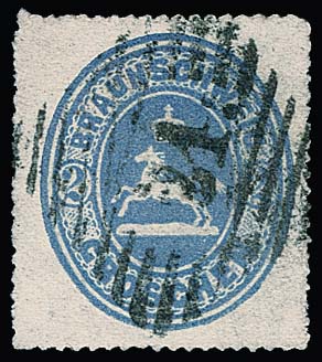 2 Sgr. schw./blau, unten Scherentrennung, oben kleiner Rand, auf Brief aus Braunschweig (NS "8") 1865, Mi. 1200,-