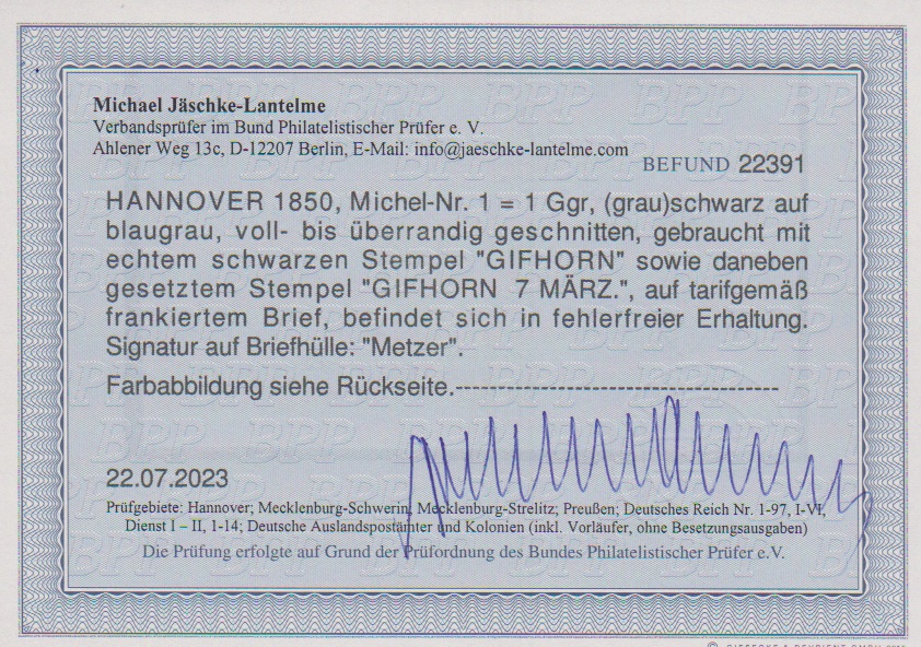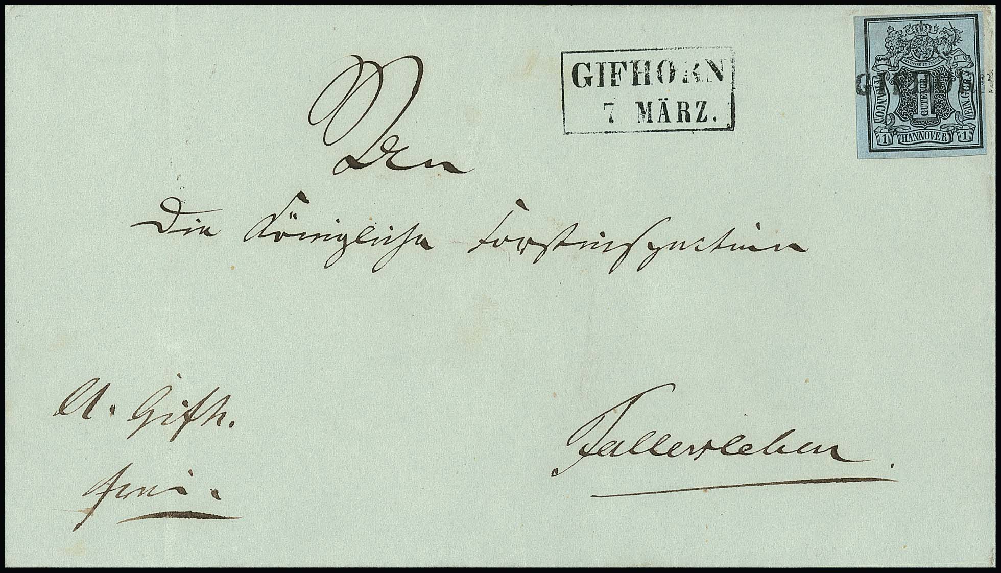 1 Ggr. schw./graublau auf Luxusbrief mit schwarzem L1 "Gifhorn", Ra2 nebengesetzt, ex Metzer, Fotoexp. Jäschke-L., ex Slg. Erivan Haub