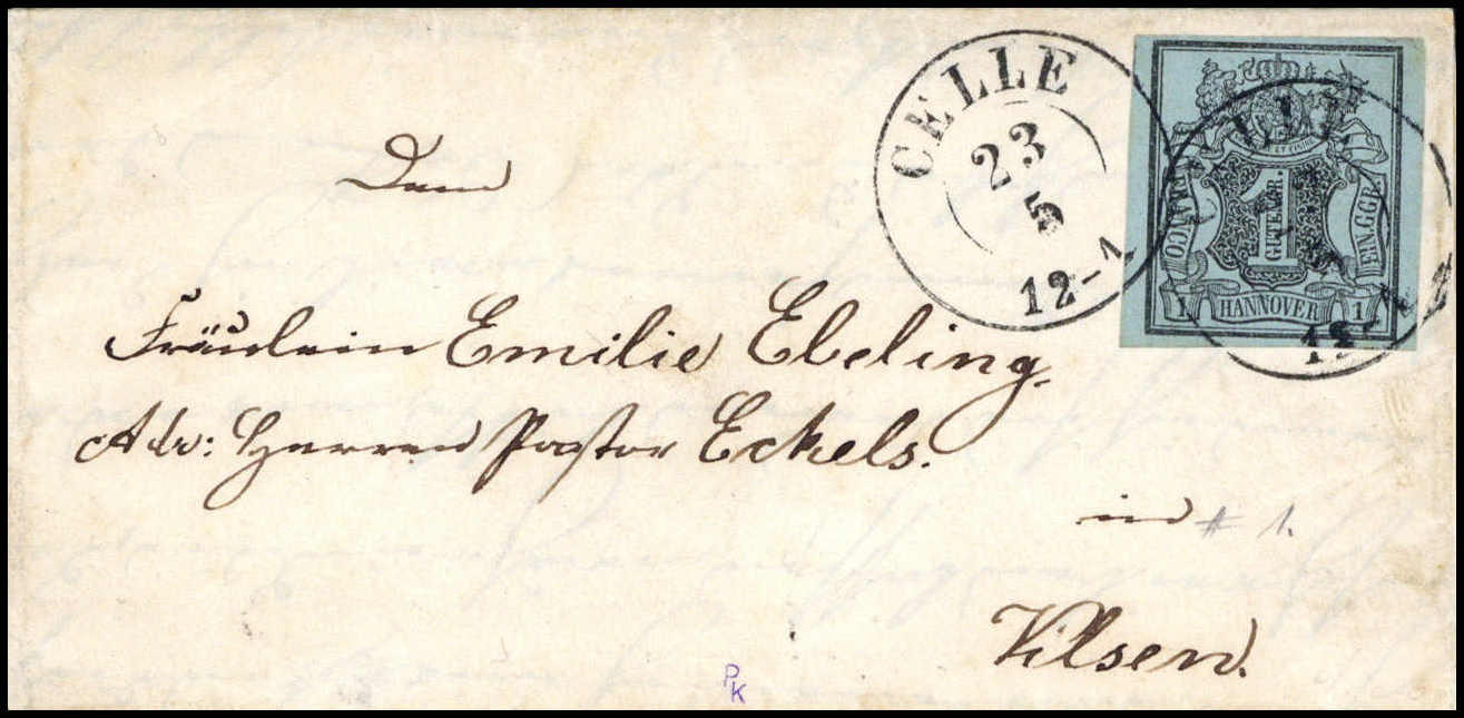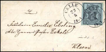 1 Ggr. schw./graublau auf kleinem Kabinettbrief mit klarem K2 "Celle"