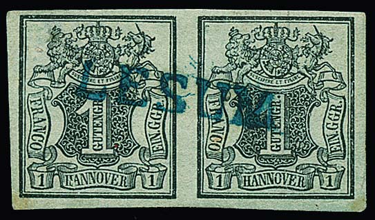 1 Ggr. schw./graublau, senkrechter, gut gerandeter Dreierstreifen, etwas ("hannover-") hell, mit zweifachem L1 "Goerde", Mi. 1000,-