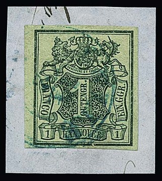 1 Ggr. schw./graugrün, kopfstehendes Wasserzeichen und zusätzlich unten kleiner Plattenfehler, auf Prachtbriefstück mit K2 "Celle", Mi. 300,-