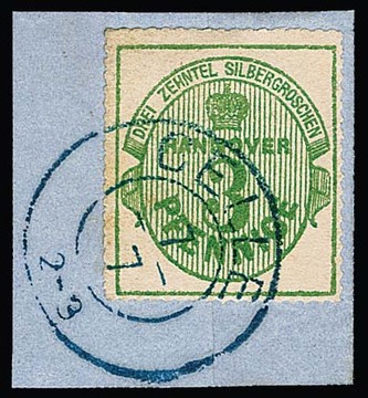 3 Pfge. grün, weißer Gummi, auf Kabinettbriefstück mit vollem K2 "Celle", sign. Pfenninger, ex Slg. Erivan Haub