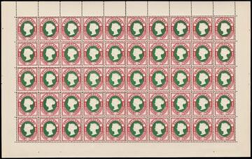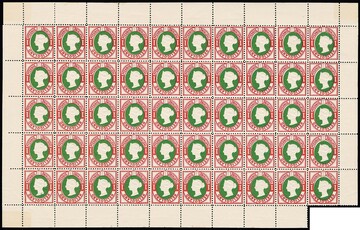 1 Pfg., Hamburger Neudruck im postfrischen Bogen (Rand Falzreste, unten rechts kleine Fehlstelle nur im Bogenrand) in der seltenen Variante mit kopfstehendem Mittelstück, nur wenige Bögen bekannt!