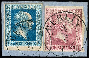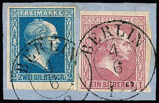 2 Sgr. blau in Mischfrankatur mit 1 Sgr. rosa auf Kabinettbriefstück mit K2 "Berlin", ex Metzer, ex Slg. Erivan Haub