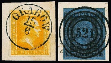 3 Sgr. orange auf Luxusbriefstück mit idealem vorphil. K1 "Grabow", sign. Brettl, als Beigabe 2 Sgr. schw./blau auf Briefstück mit wie gedrucktem NS "521" von Grabow, ex Slg. Erivan Haub