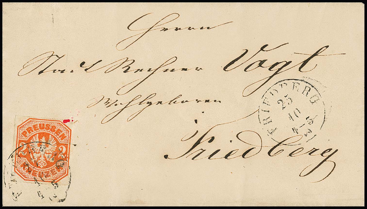 2 Kr. orange (kl. Eckfehler) einzeln auf Ortsbriefchen (selten) mit Taxis-K1 "Friedberg", sign. Kruschel, ex Slg. Erivan Haub