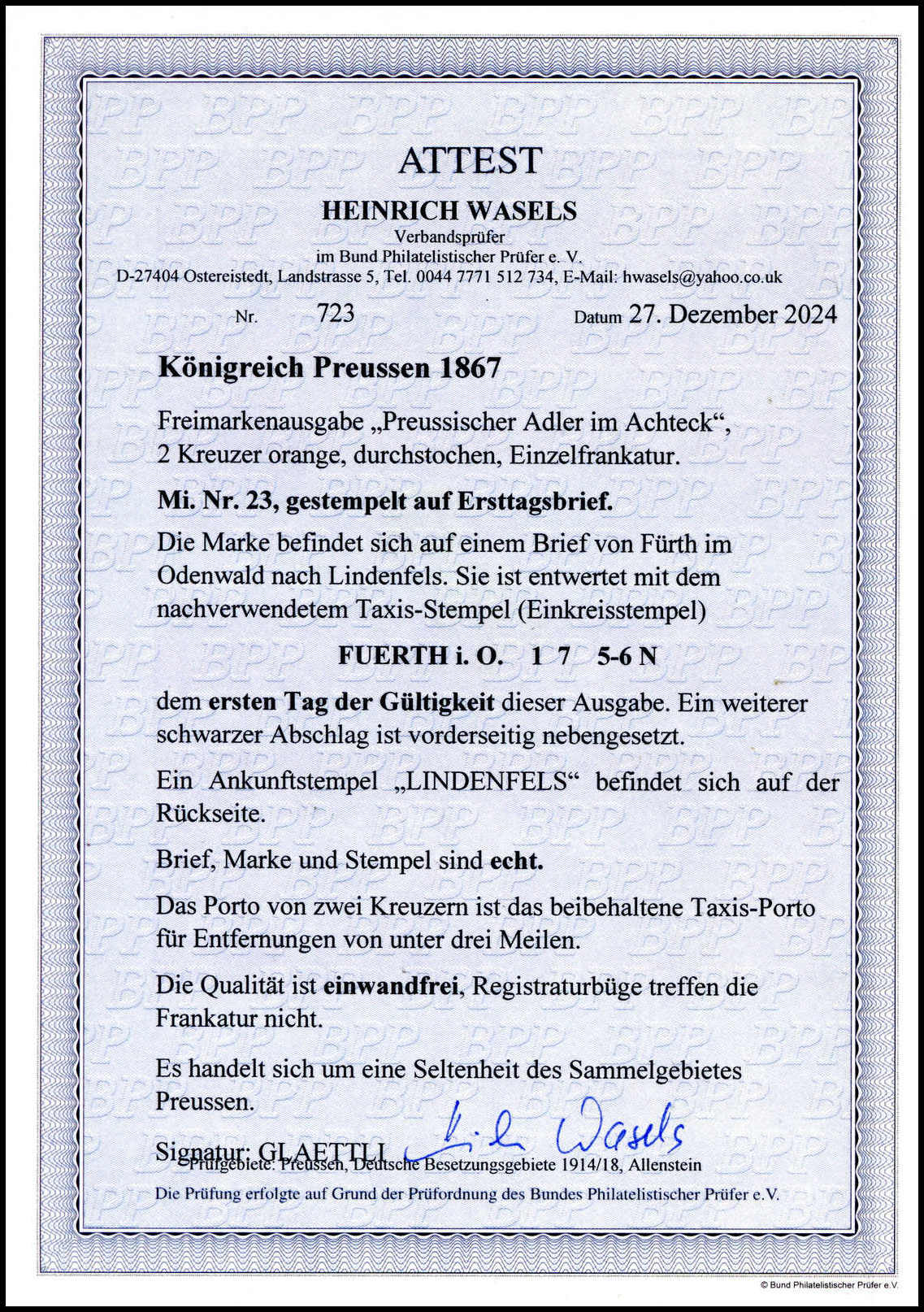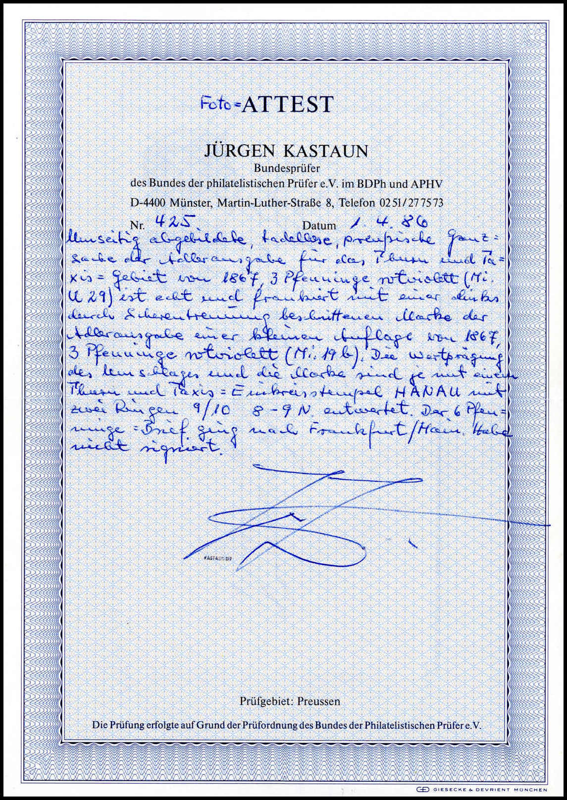 Attest siehe Abbildungen.