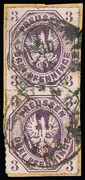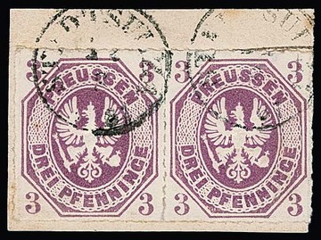 3 Pfge. rotlila im Paar auf Kabinettbriefstück mit besserem nachverw. Taxis-Fingerhut-K1 "Stadtsulza", Attest Wasels. Mi. 1000,-
