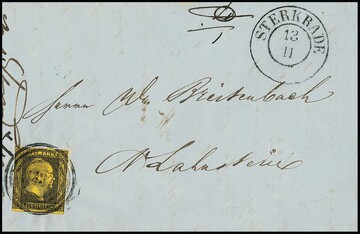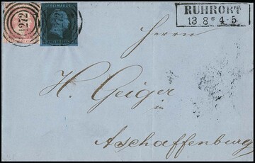 "1272" nebst Ra2 "Ruhrort" auf drei Briefen, dabei Prachtbrief 1 Sgr. schw./lilarosa, sowie bessere Kombination Nr. 2 mit 6a (diese unten angeschnitten)