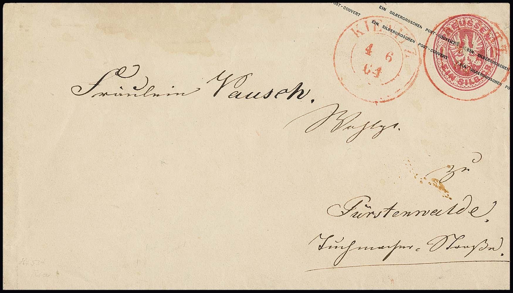 "Kienitz", seltener roter K2 der Hilfspostanstalt klar auf Ganzsache 1 Sgr. (links oben etwas fleckig), ex Slg. Erivan Haub
