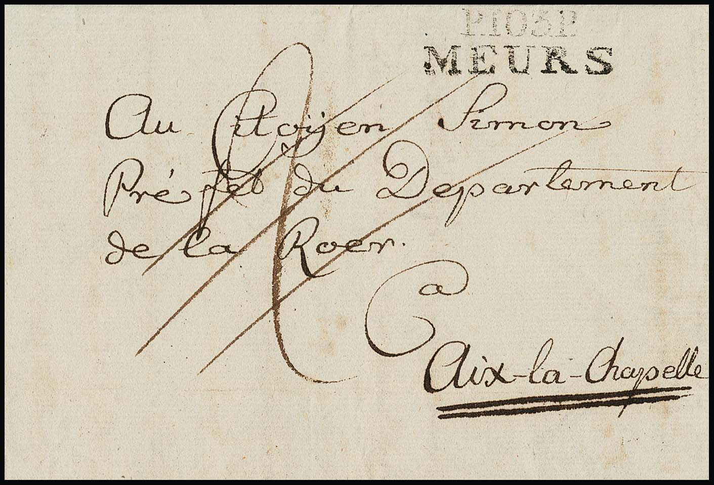 "Meurs", 1801, L2 "P.103.P. MEURS" klar auf Kabinett-Faltbrief nach Aachen, Feuser 2257-3