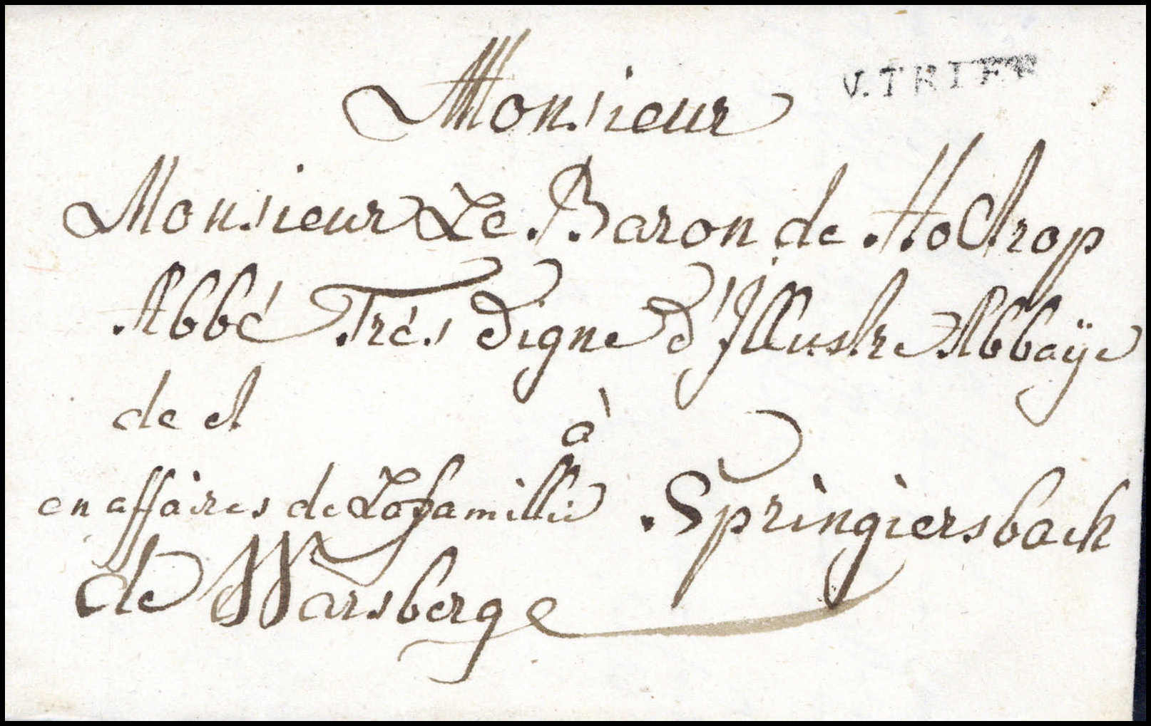 "Trier", 1780, L1 "V. TRIER" auf Kabinettbrief, Feuser 3606-4